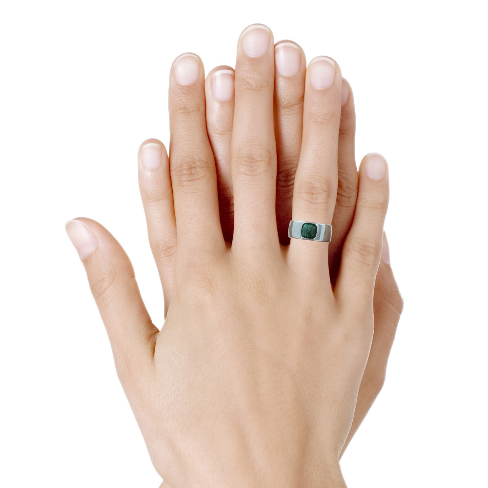 Bague Argent 925 Large Pyramide Malachite