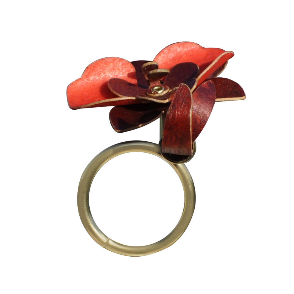 Bague Laiton Tube et Orchidée en Cuir Rouge