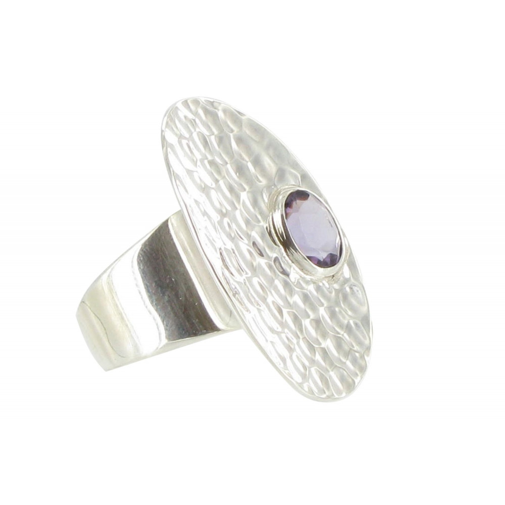 Bague Argent 925 Martelée et son Améthyste Ovale