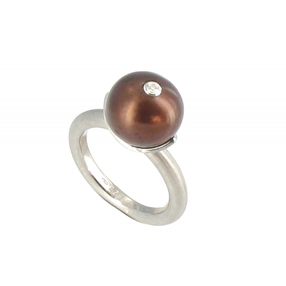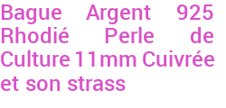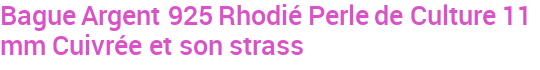 Bague Argent 925 Rhodié Perle de Culture 11 mm Cuivrée et son strass