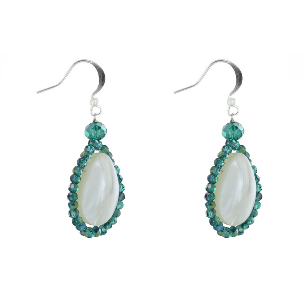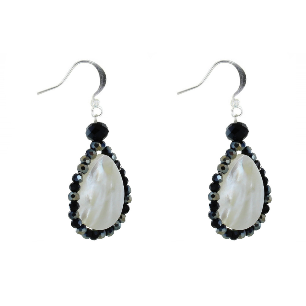 Boucles d'Oreilles Argent 925 Goutte de Nacre Perles de Verre Facettées