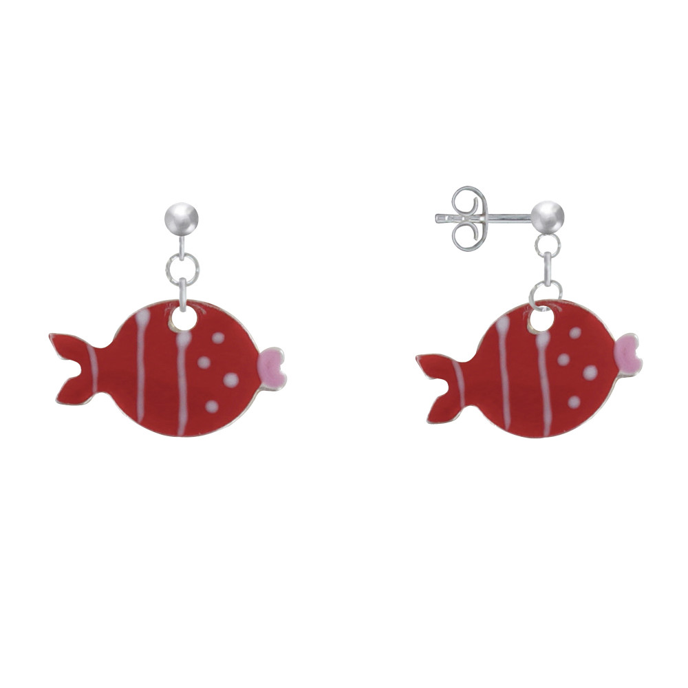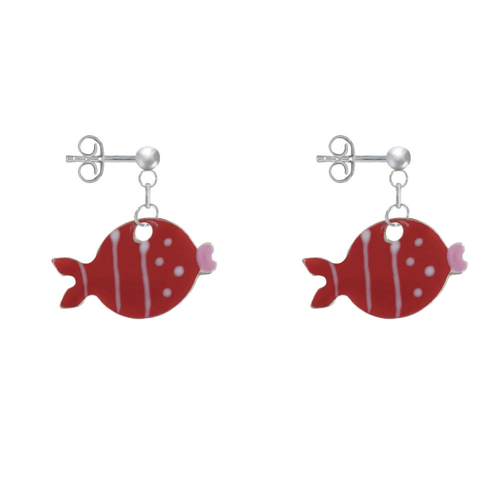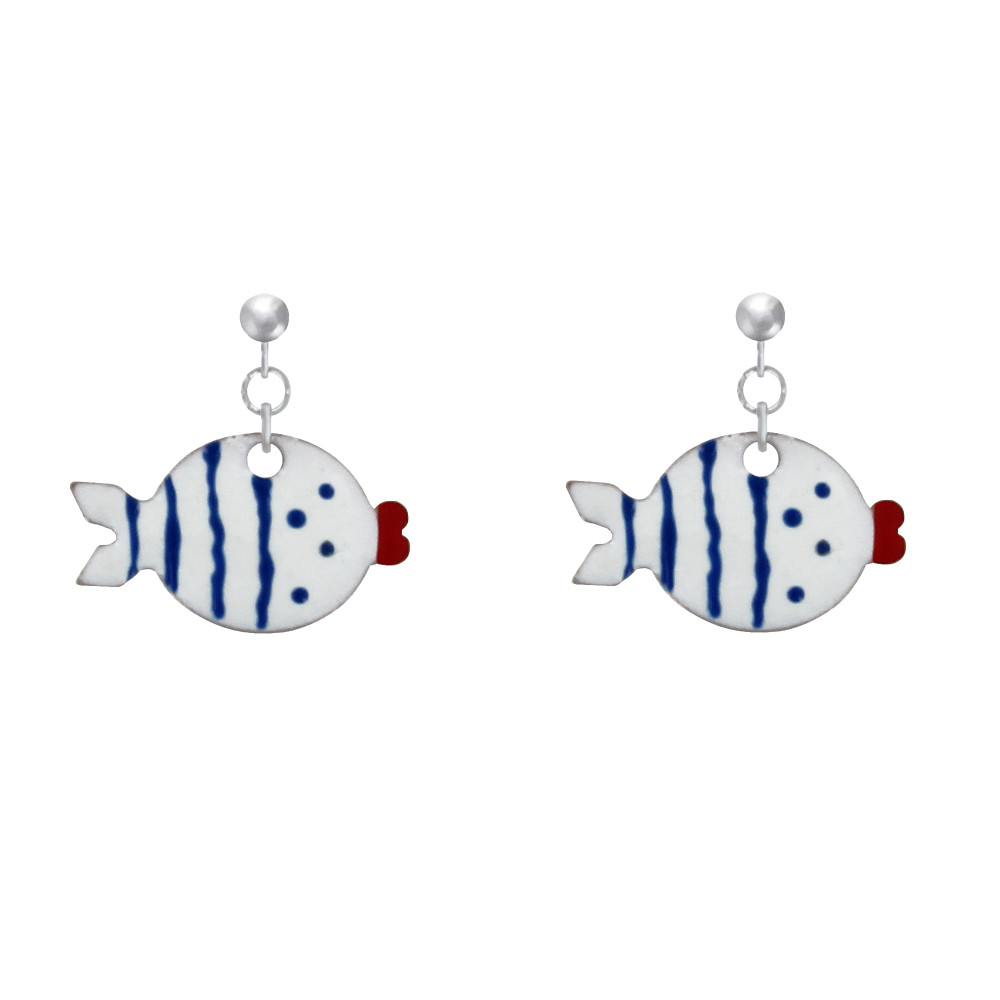 Boucles d'Oreilles Argent 925 Petit Poisson à Pois et Lignes Emaillées