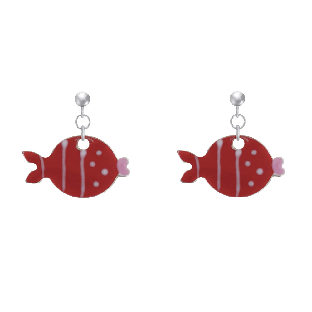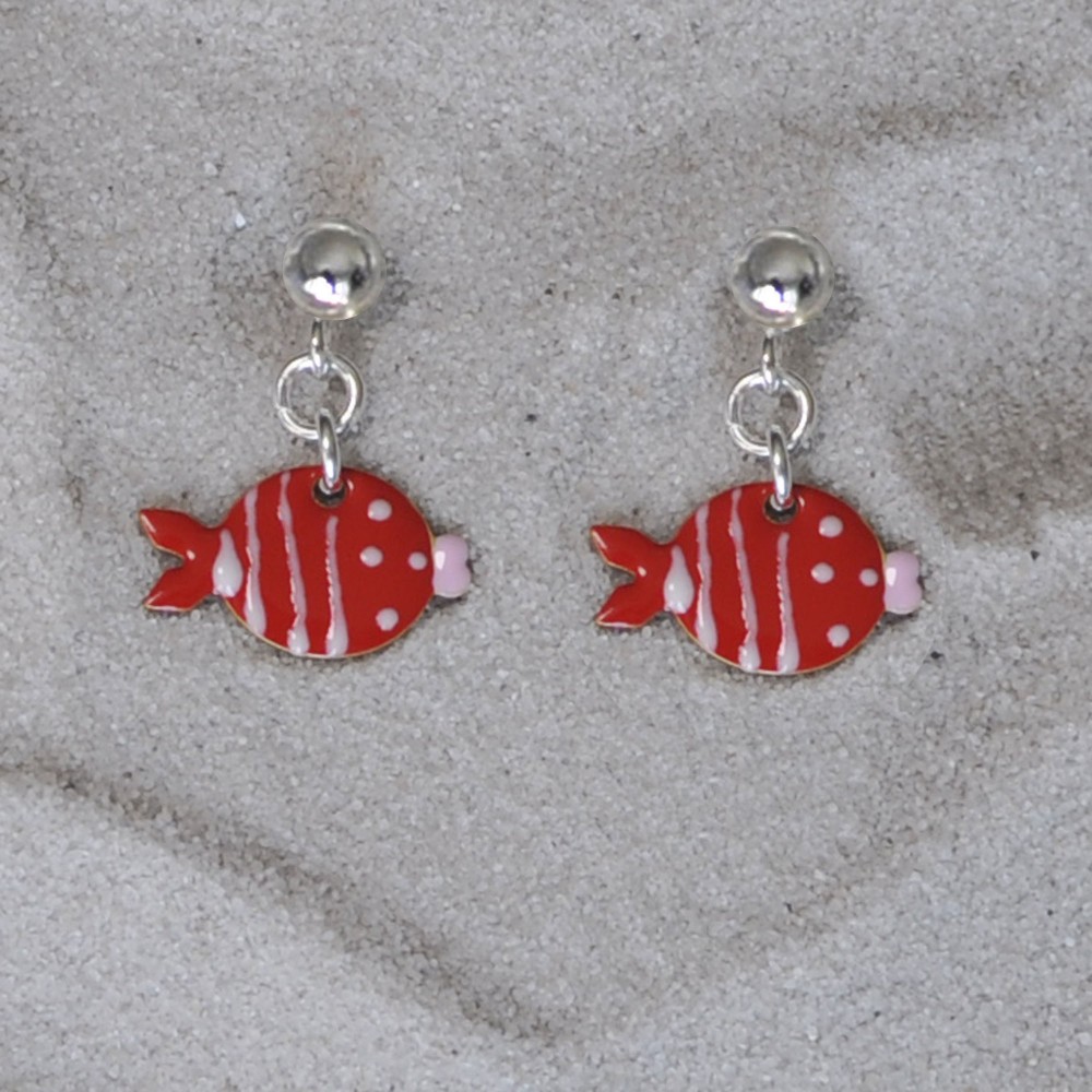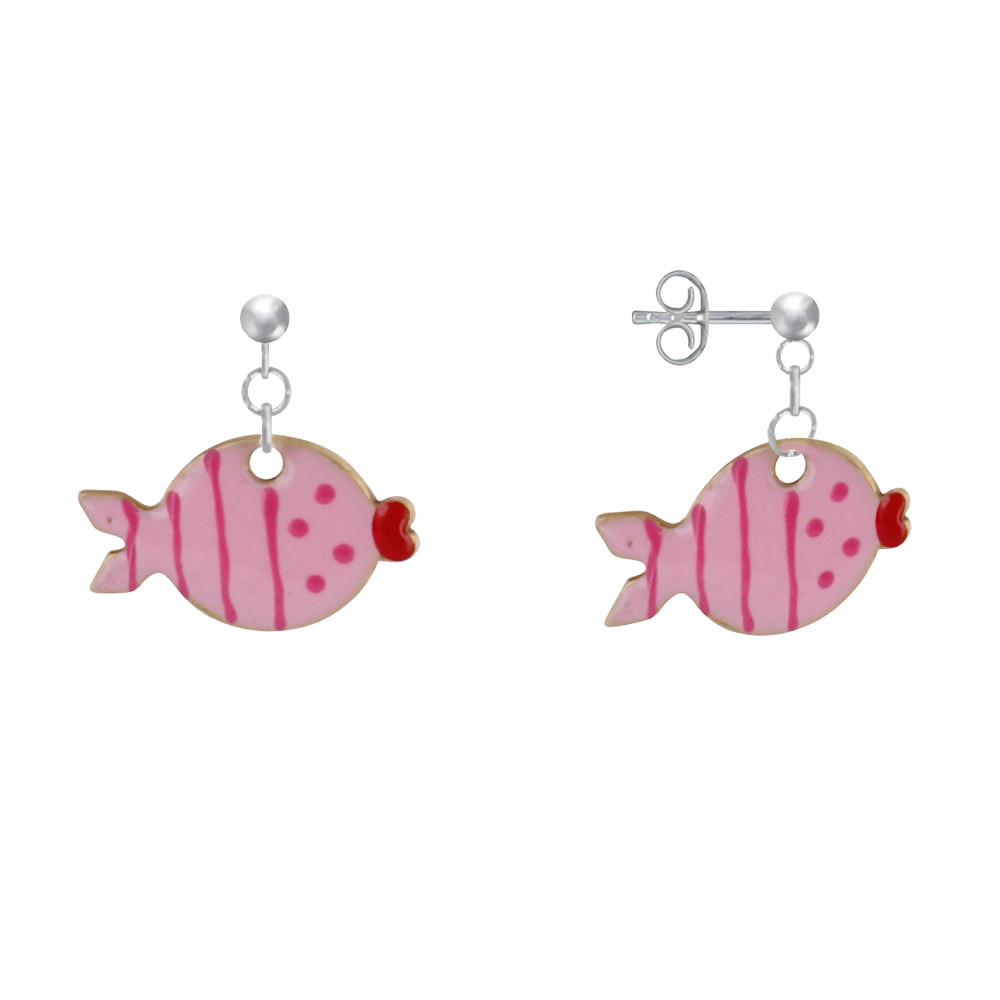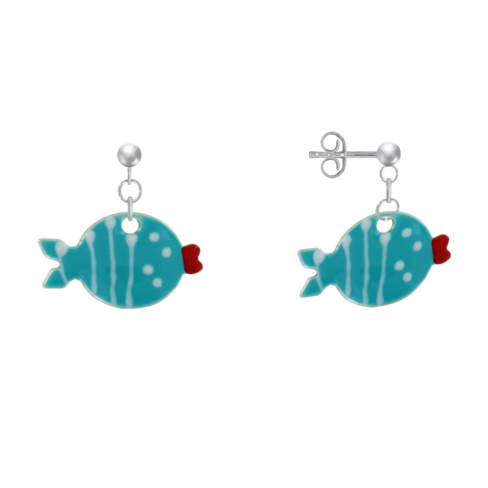 Boucles d'Oreilles Argent 925 Petit Poisson à Pois et Lignes Emaillées