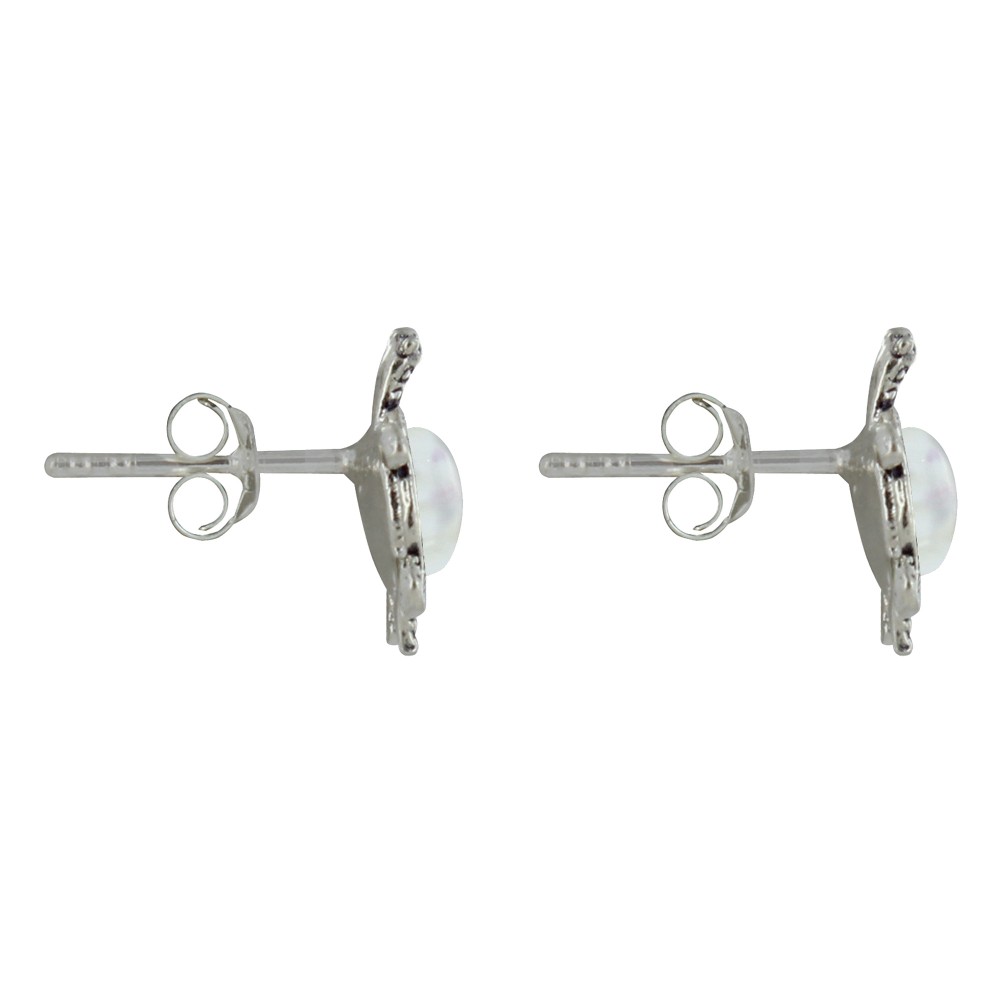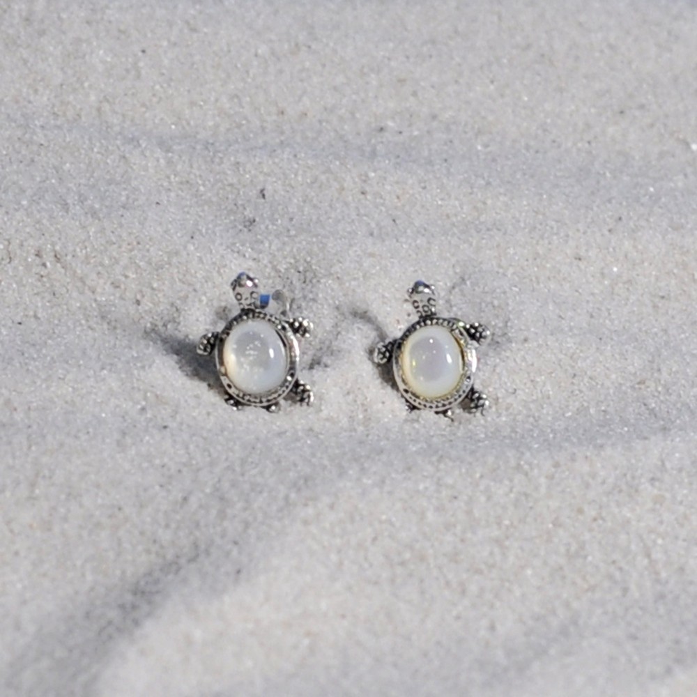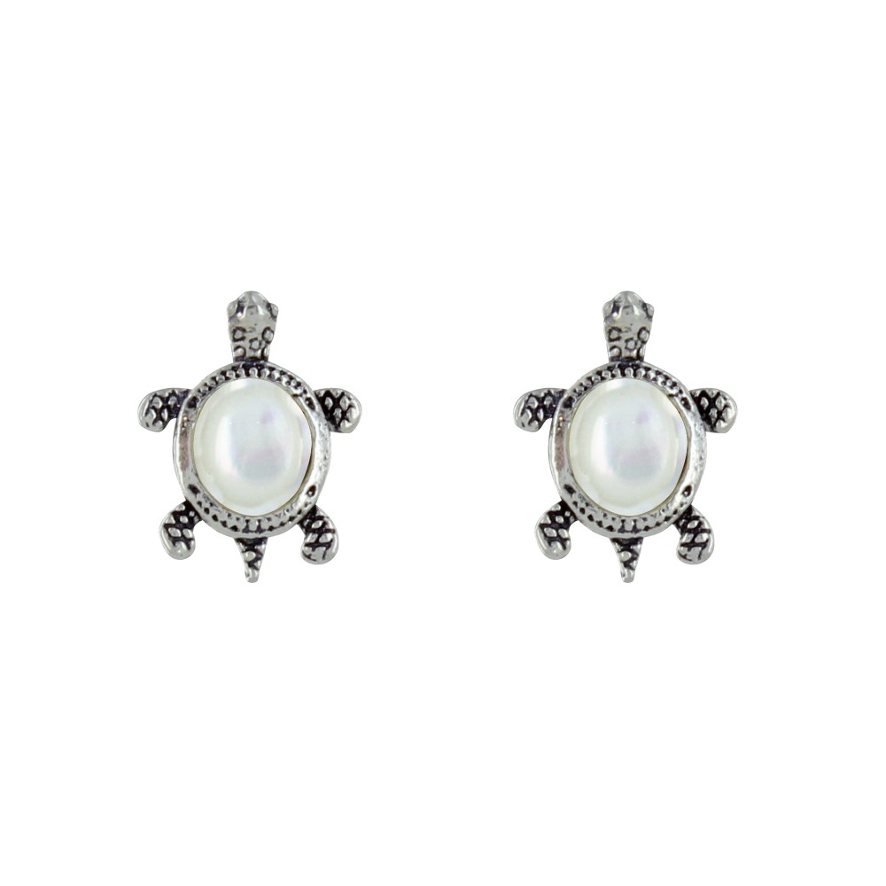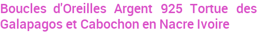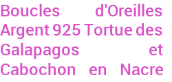 Boucles d'Oreilles Argent 925 Tortue des Galapagos et Cabochon en Nacre Ivoire