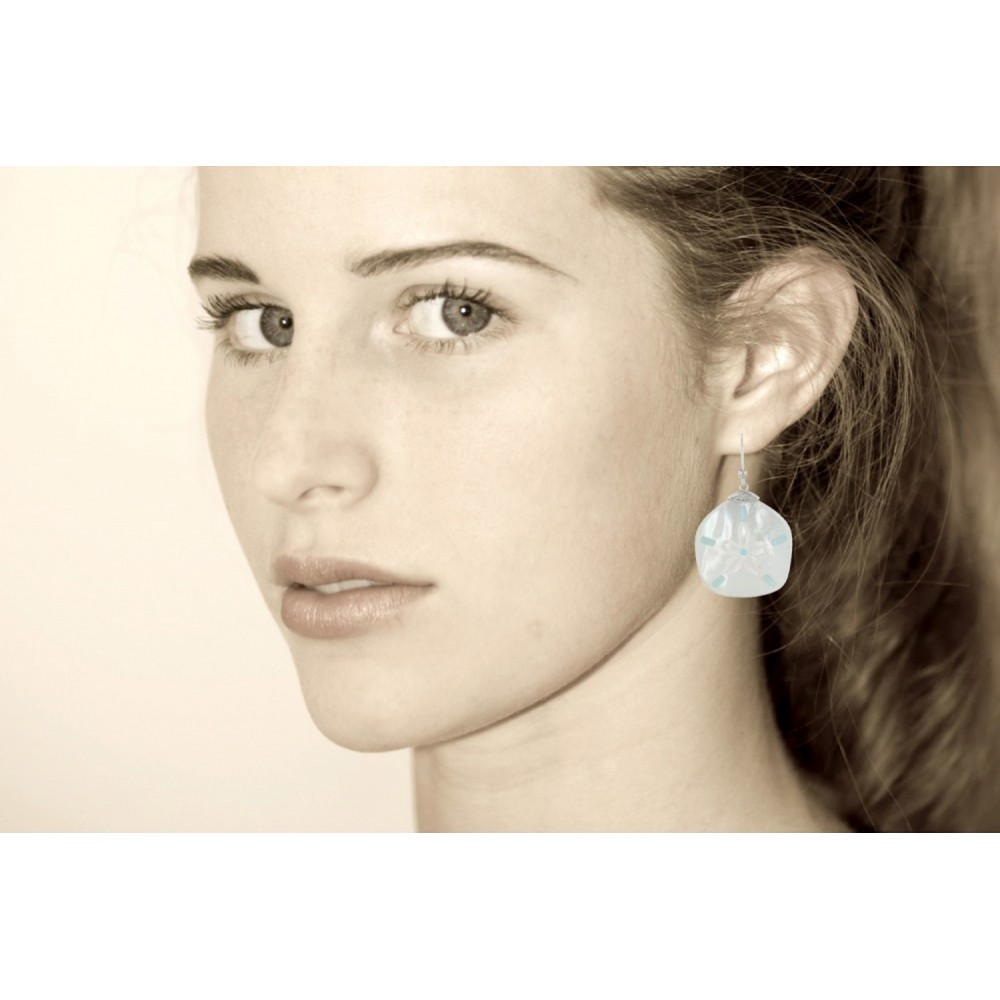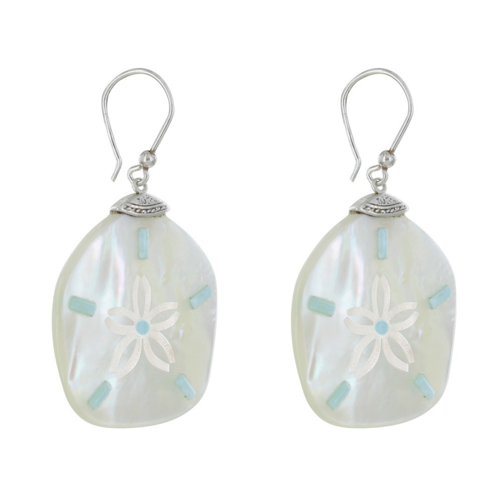 Boucles d'Oreilles Argent 925 Dollar des Sables en Nacre et Larimar - Classics