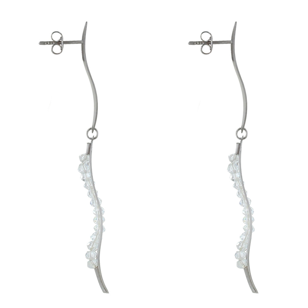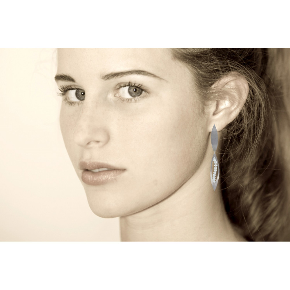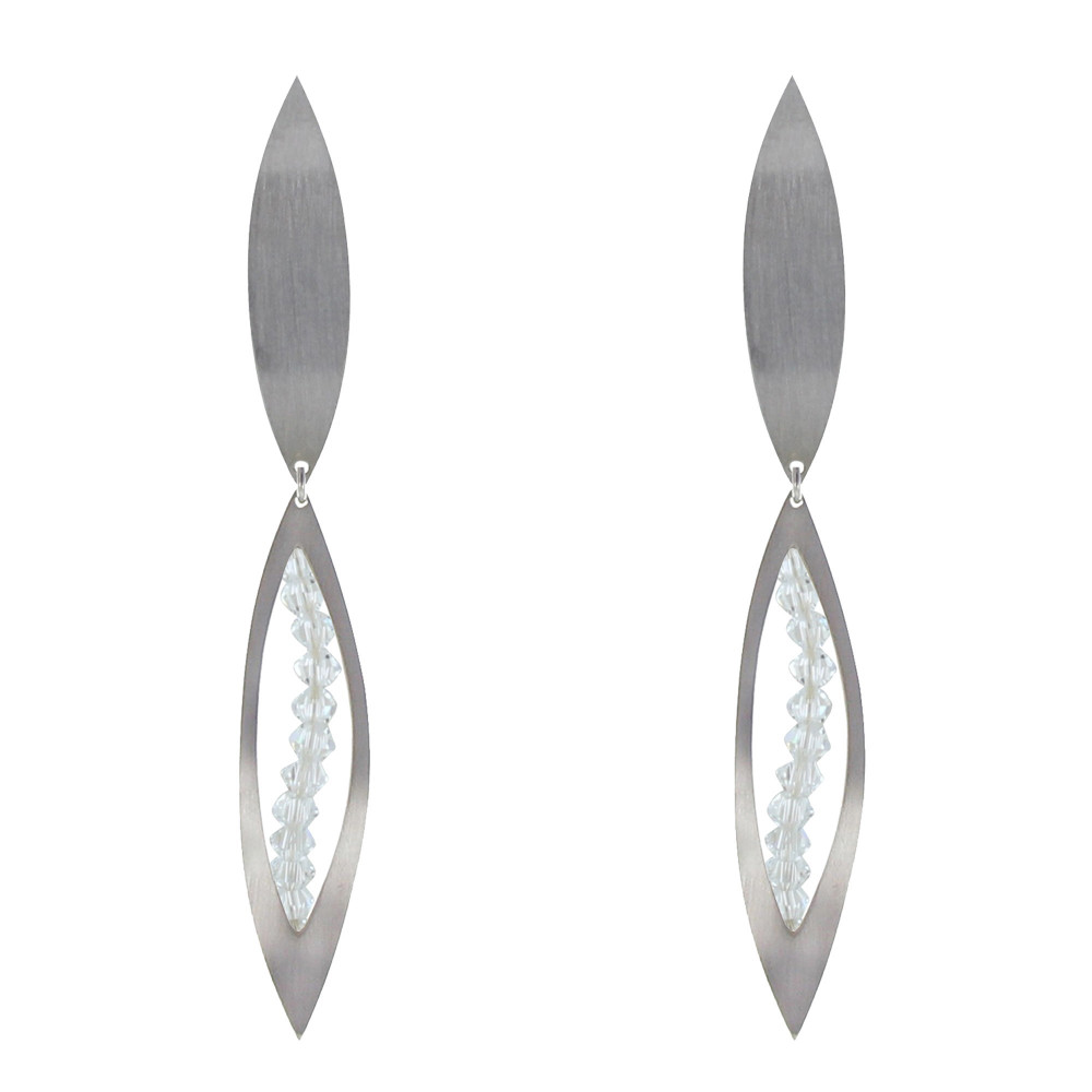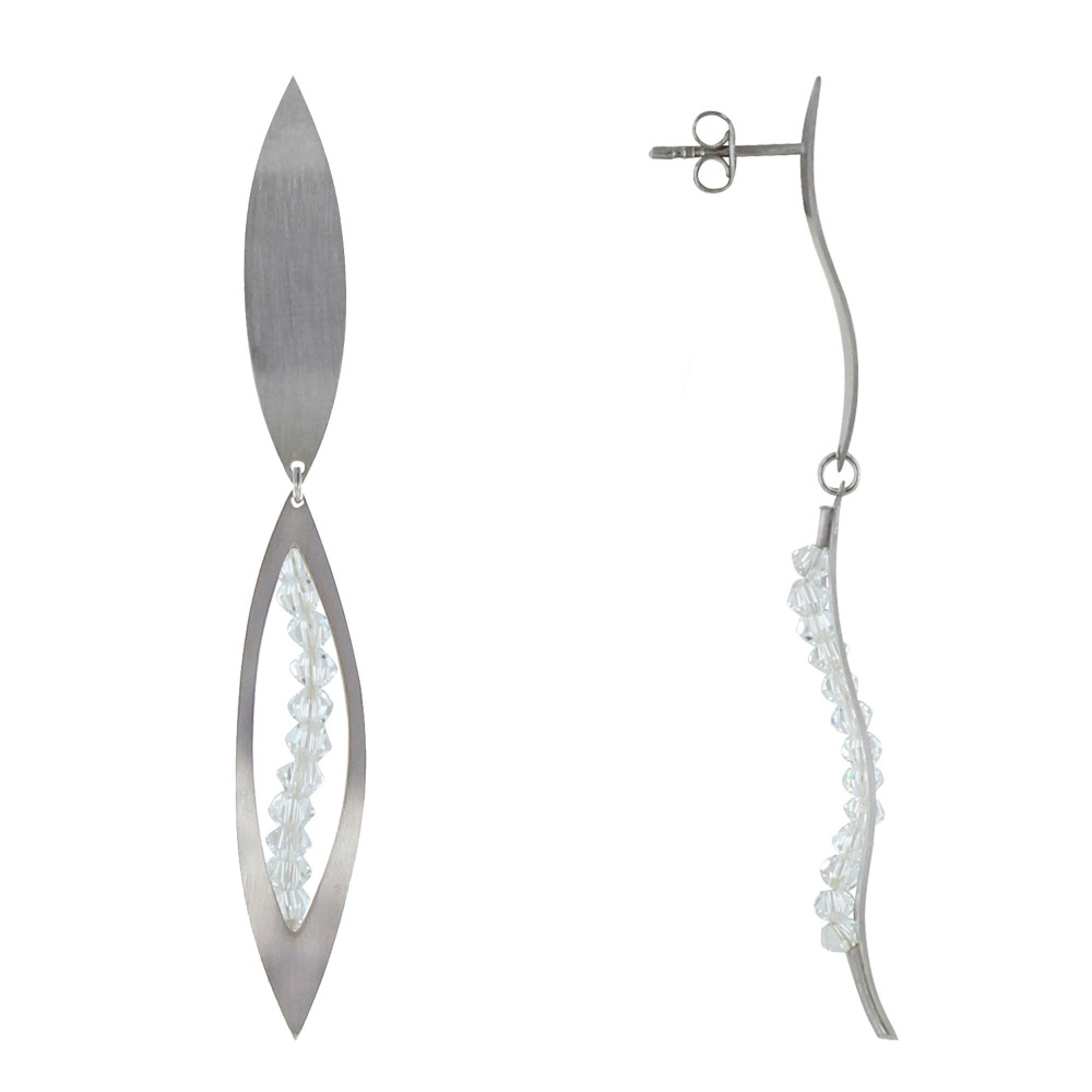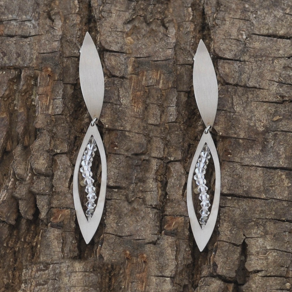 Boucles d'Oreilles Argent 925 Feuille et Feuille Ajourée Cristal