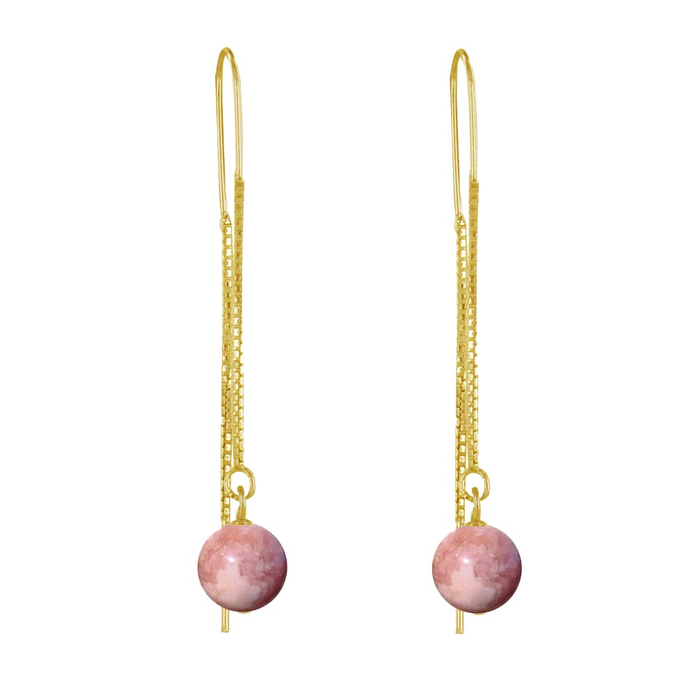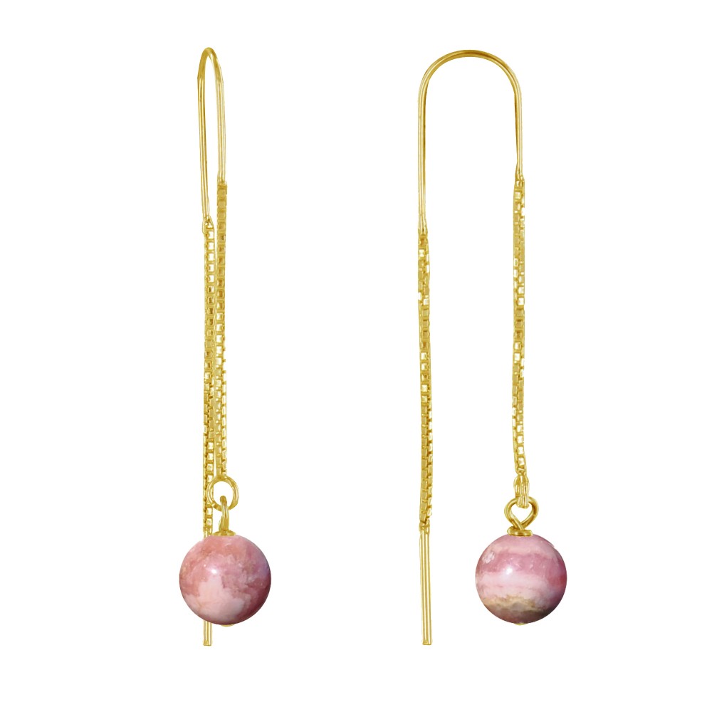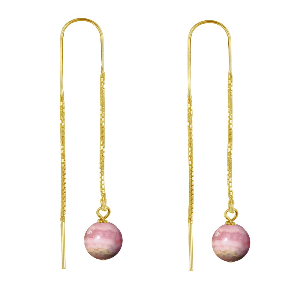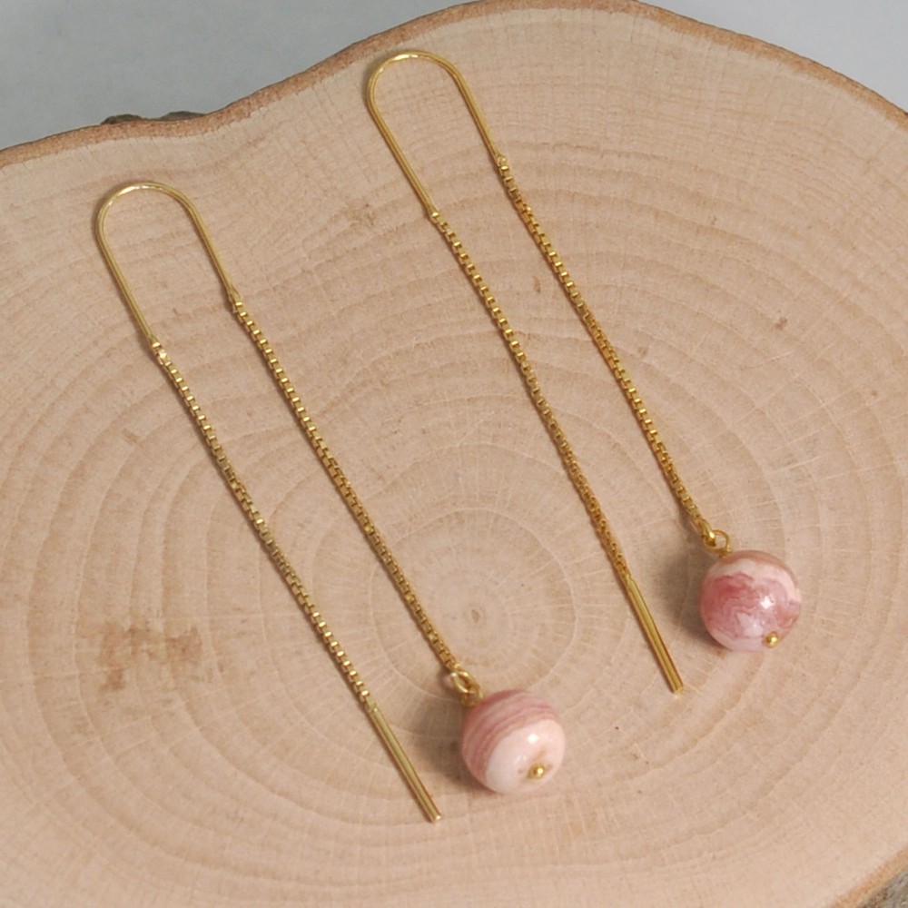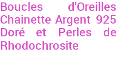 Boucles d'Oreilles Chainette Argent 925 Doré et Perles de Rhodochrosite