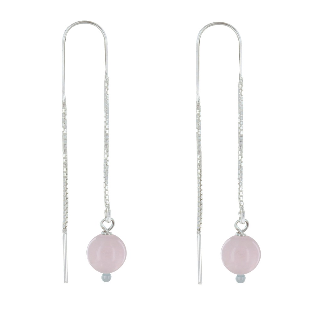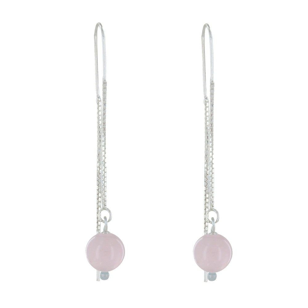 Boucles d'Oreilles Chainette Argent 925 et Perles de Quartz Rose
