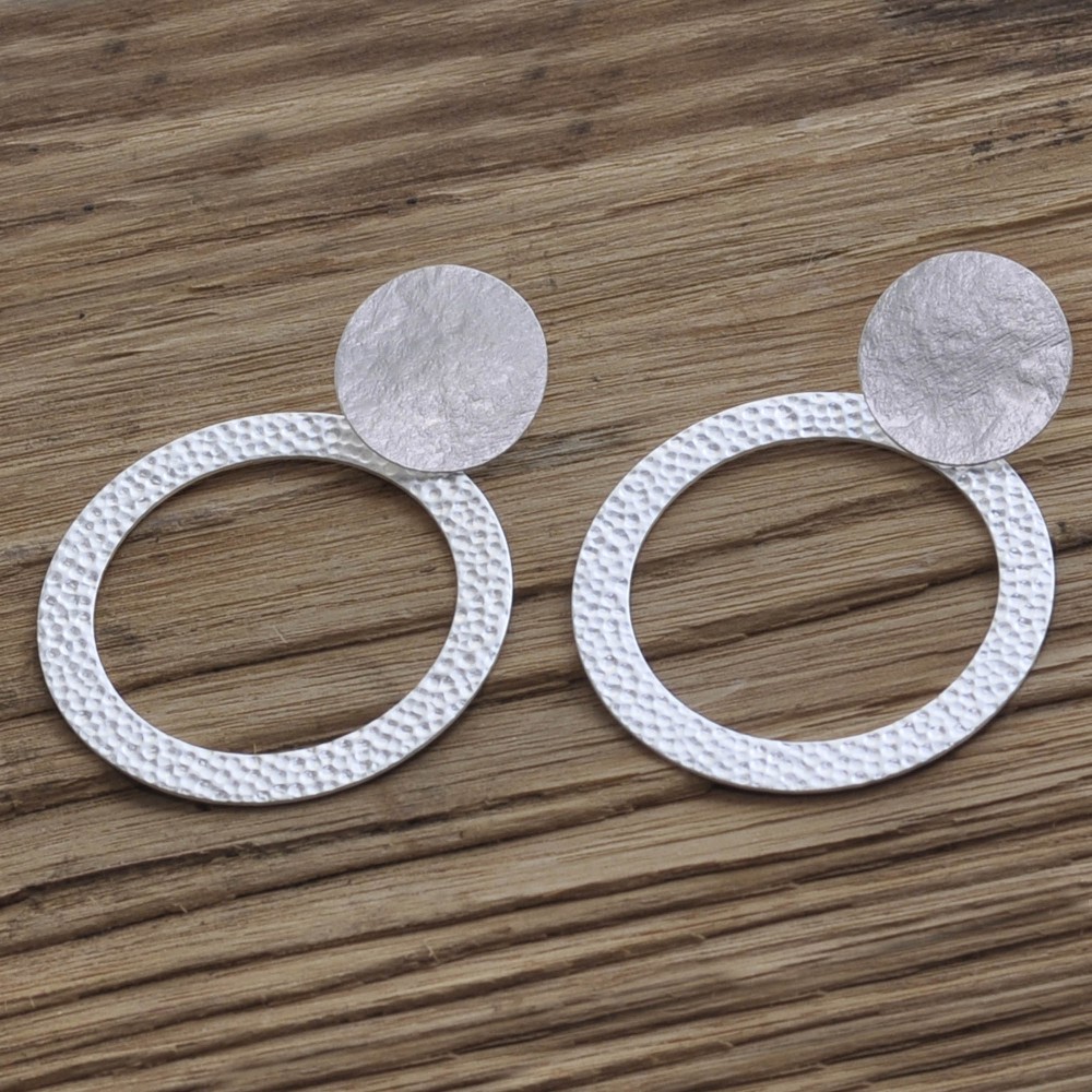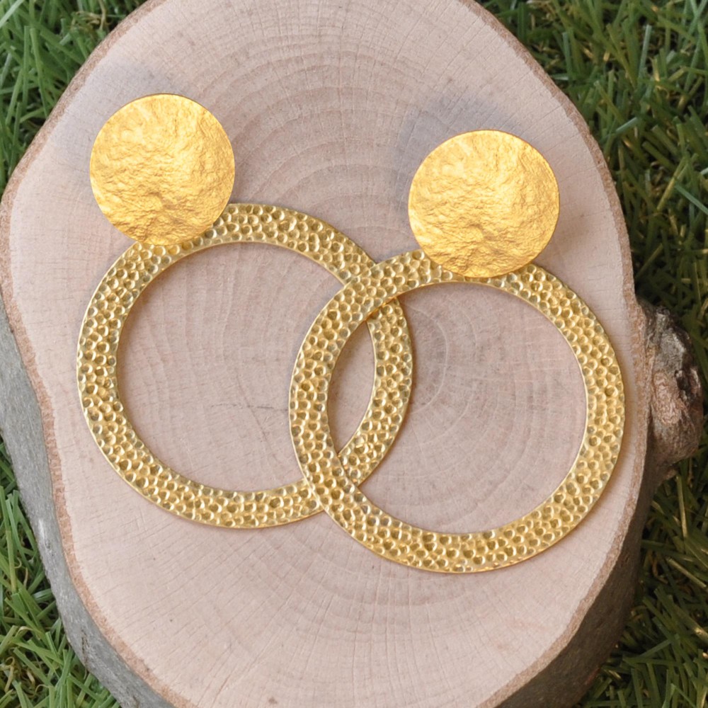 Boucles d'Oreilles Clip Laiton Mat Pastille Brossée et Anneau Martelé
