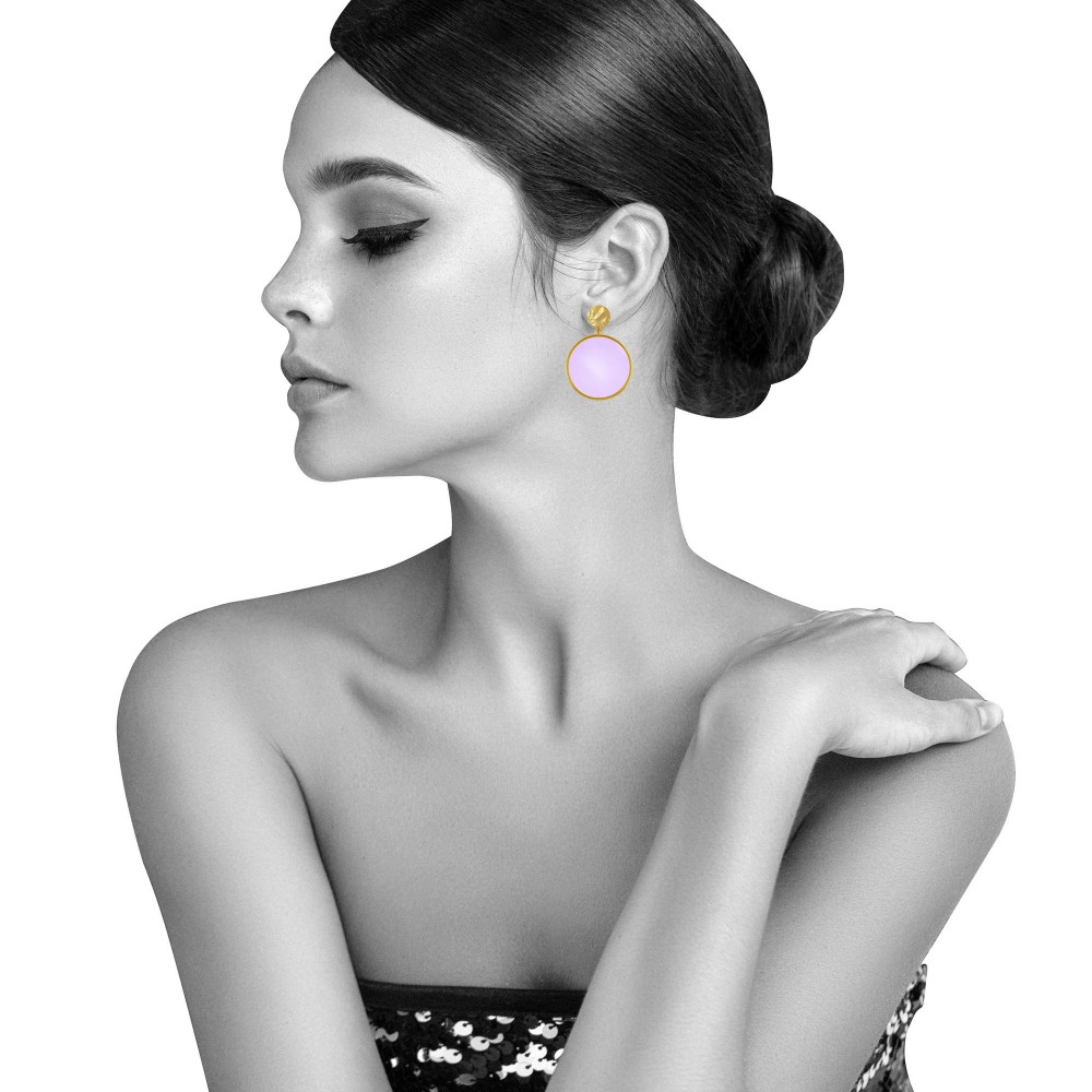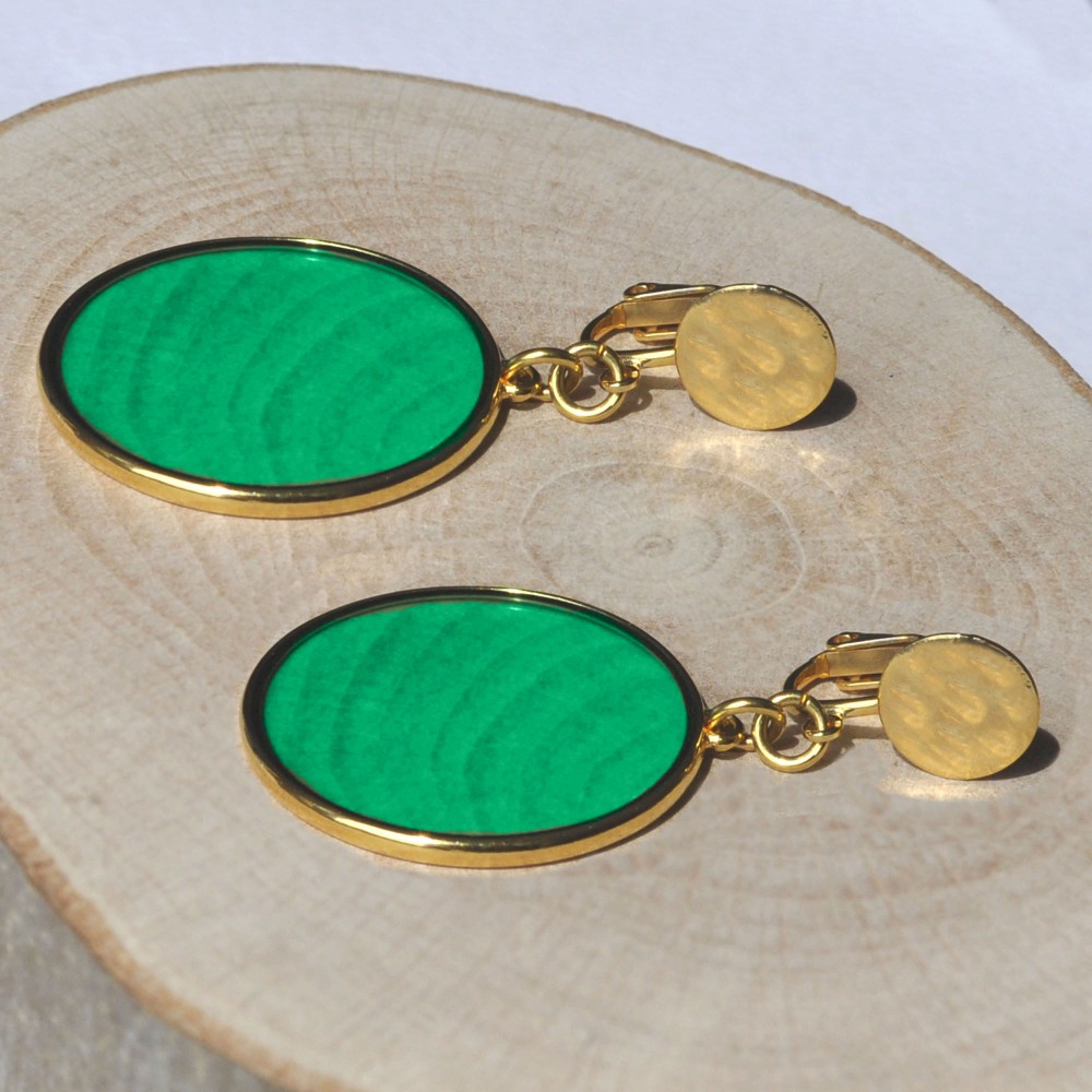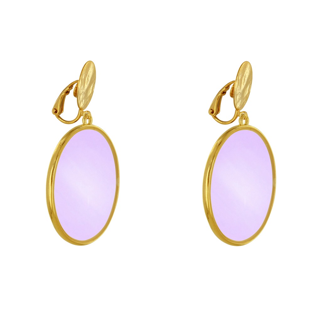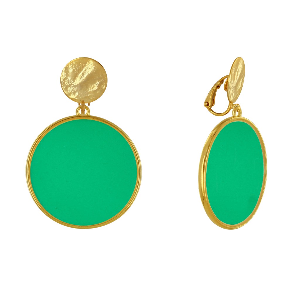Boucles d'Oreilles Clip Métal Doré Cercle Coloré Translucide