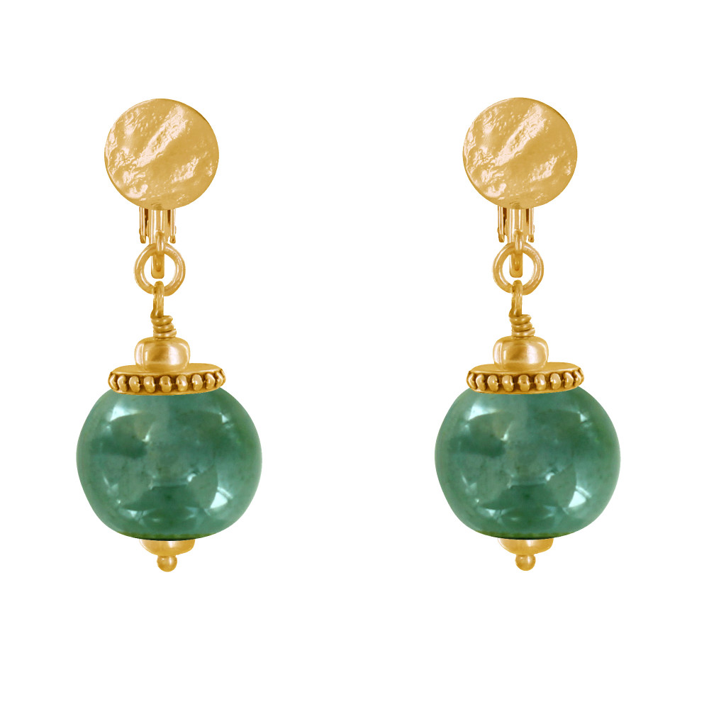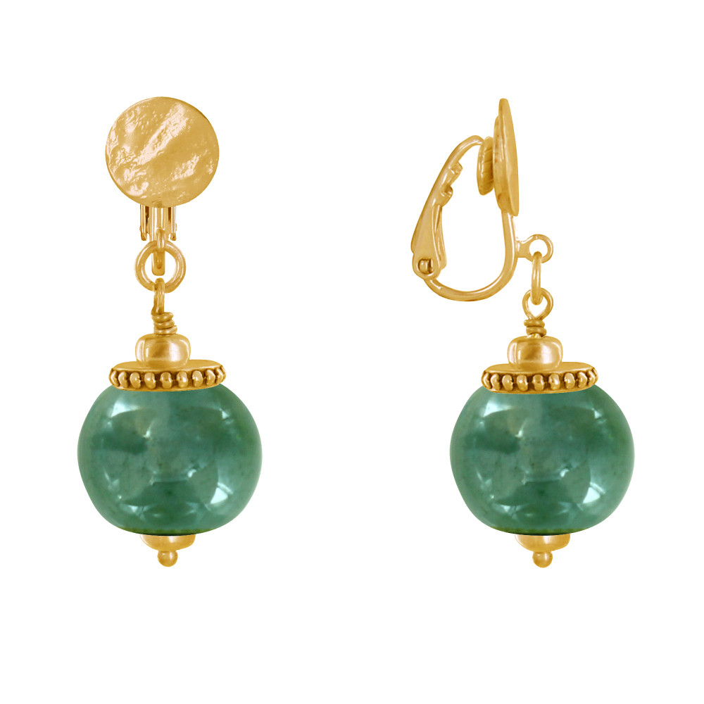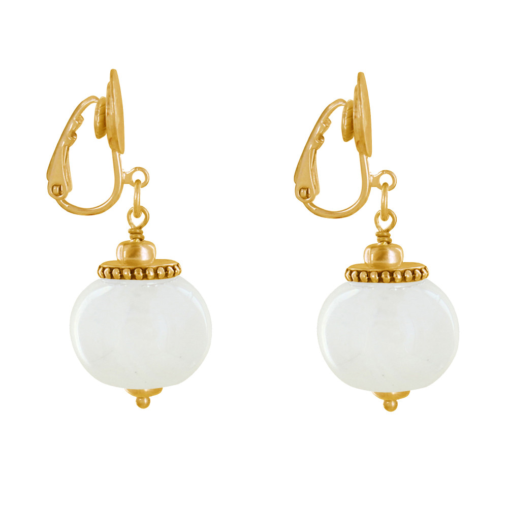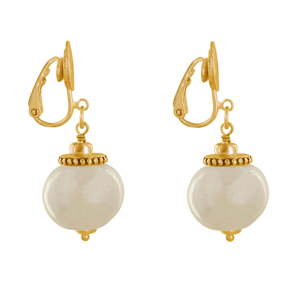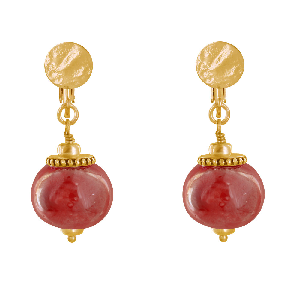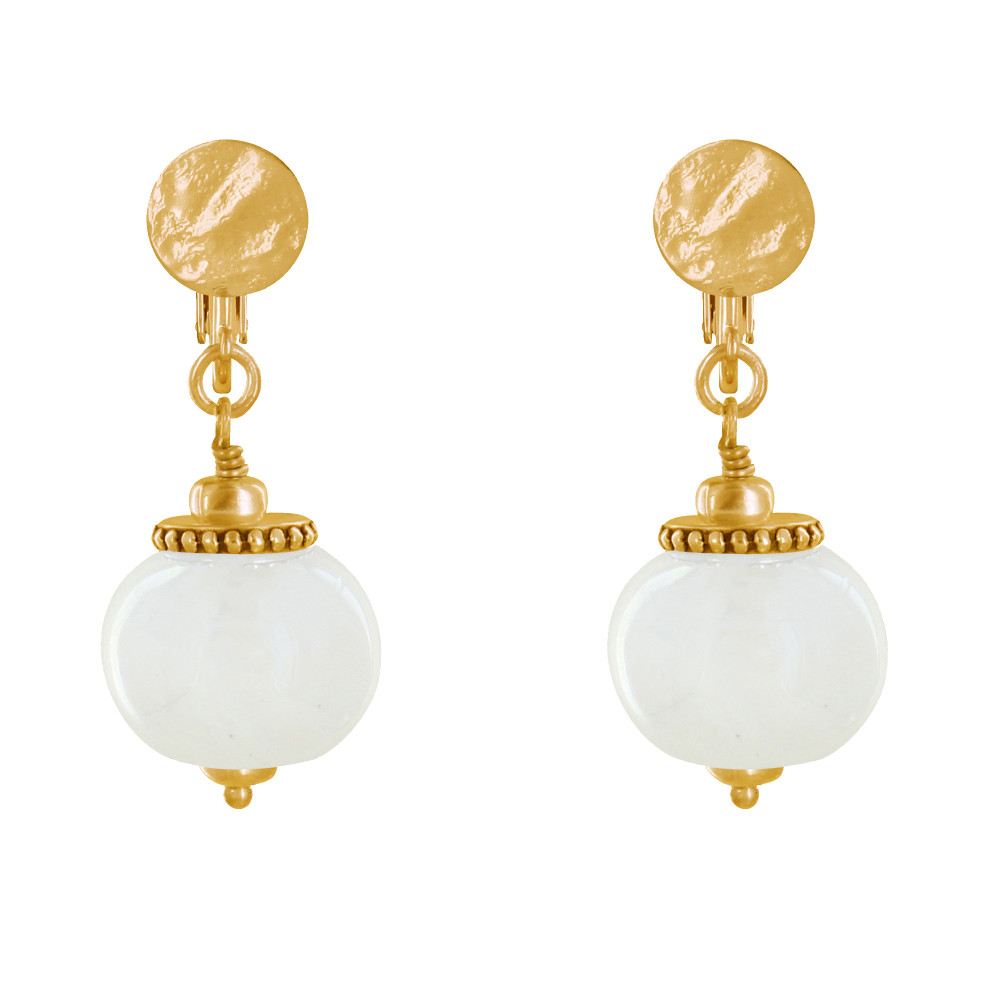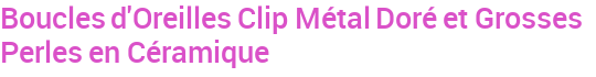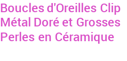 Boucles d'Oreilles Clip Métal Doré et Grosses Perles en Céramique