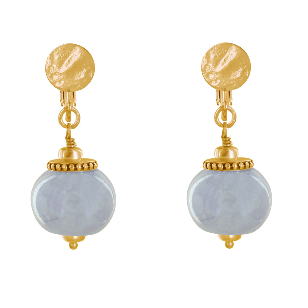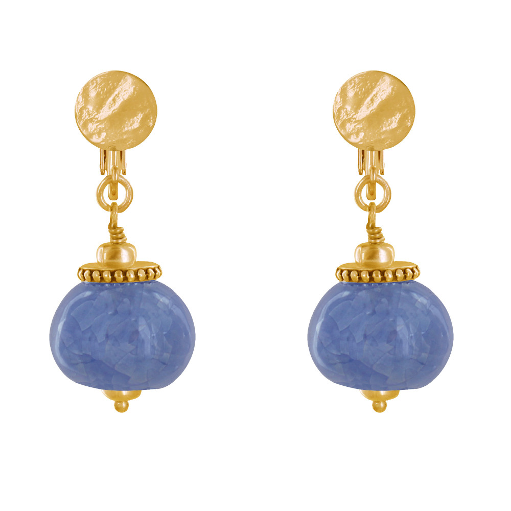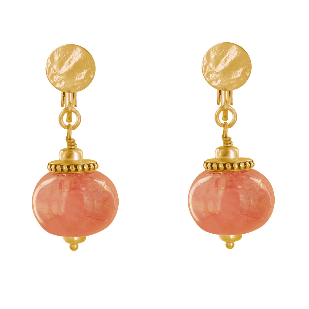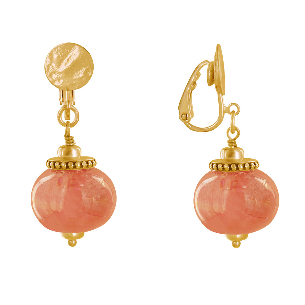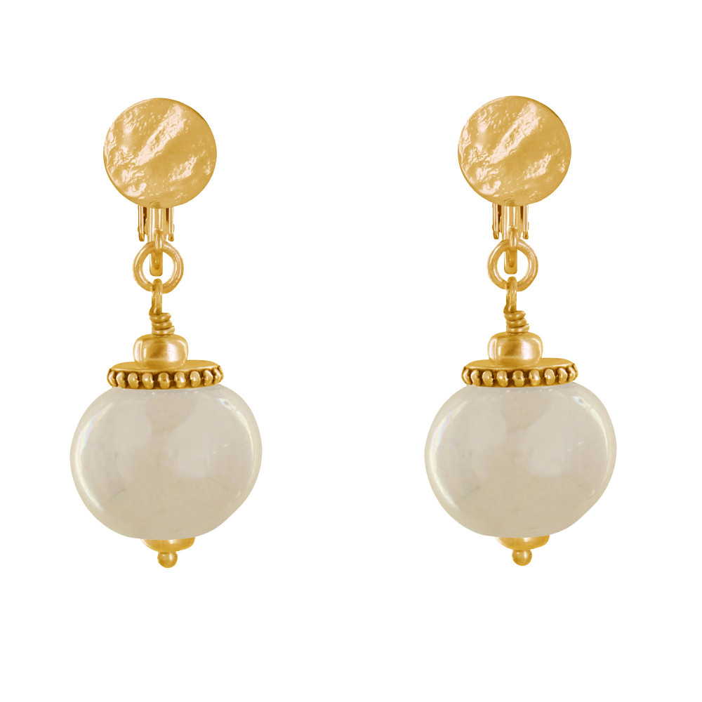 Boucles d'Oreilles Clip Métal Doré et Grosses Perles en Céramique