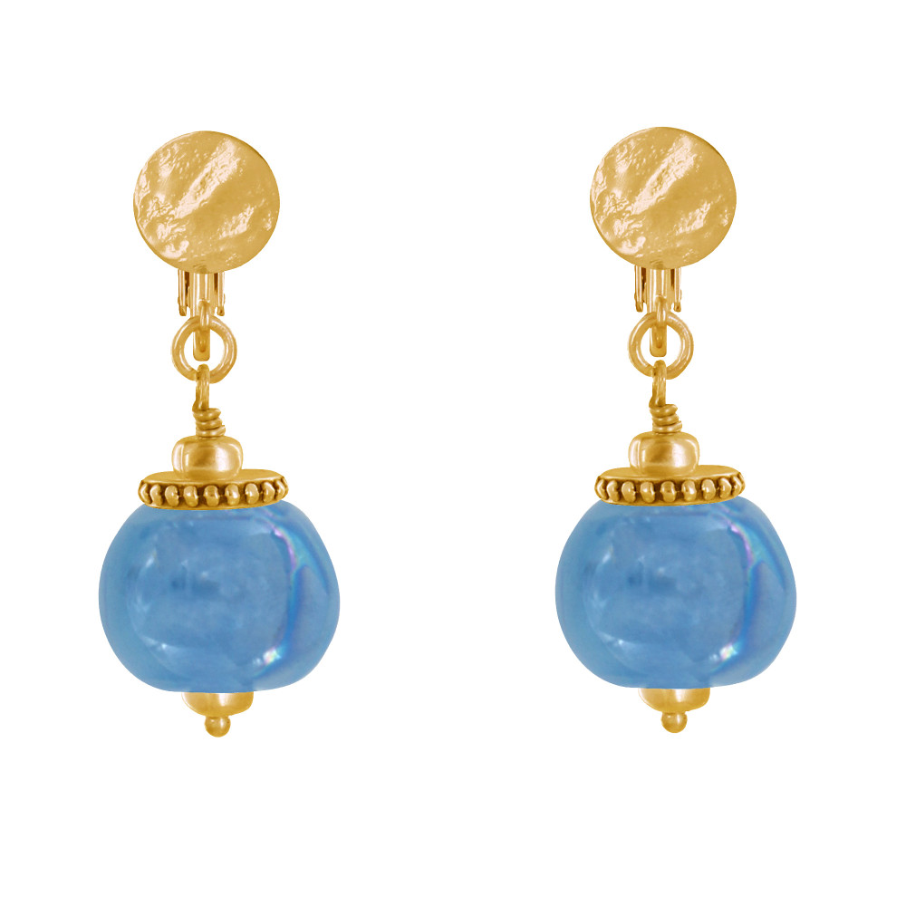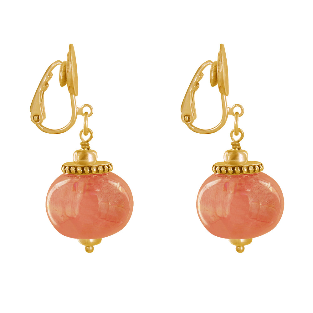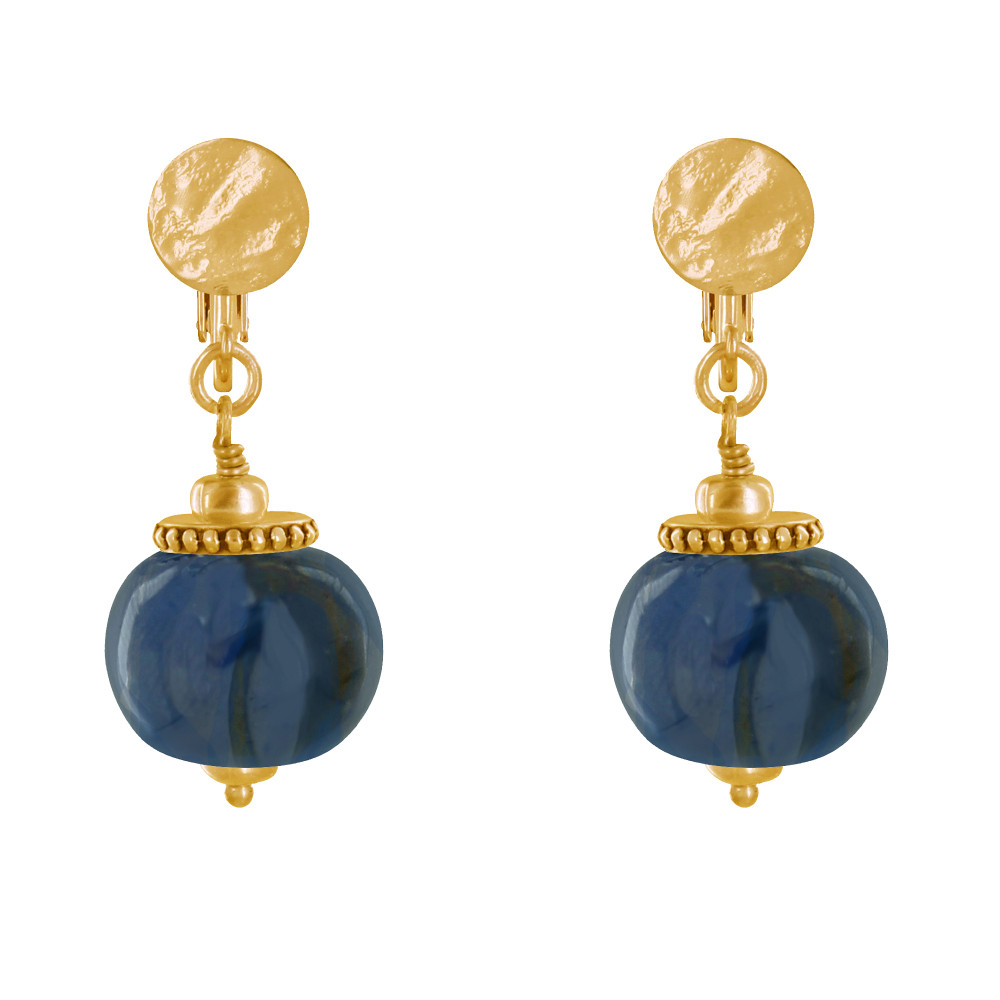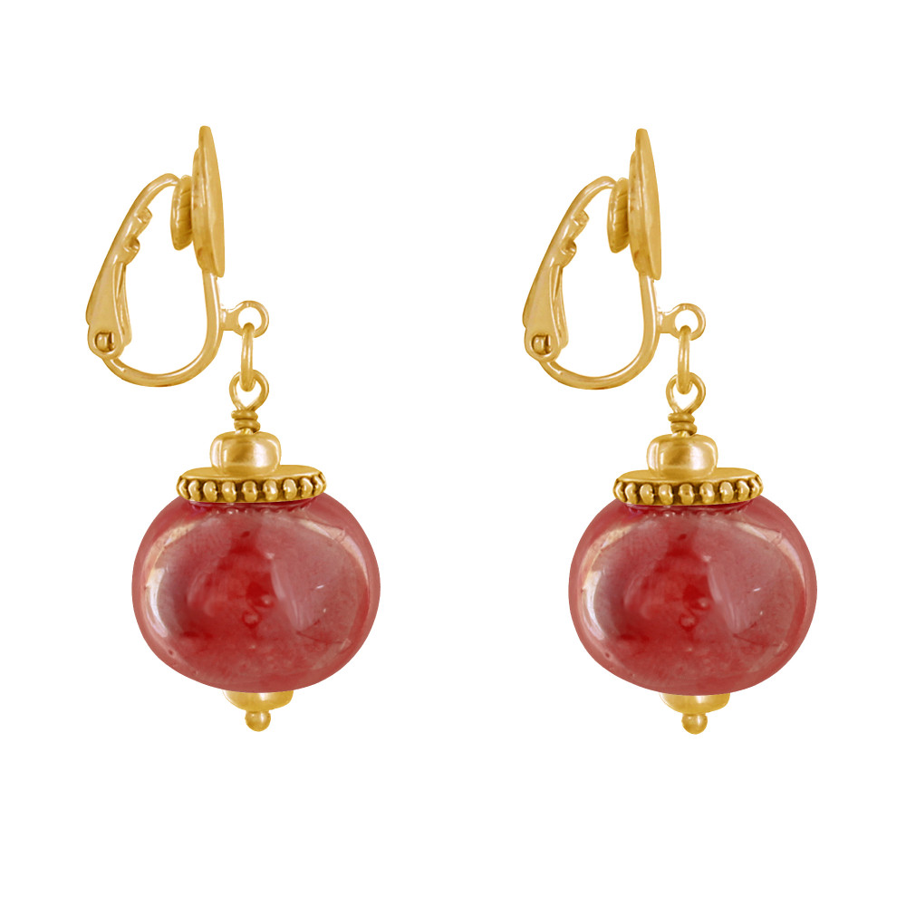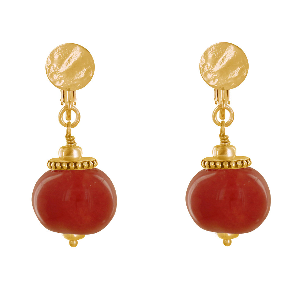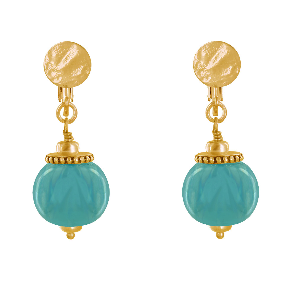 Boucles d'Oreilles Clip Métal Doré et Grosses Perles en Céramique