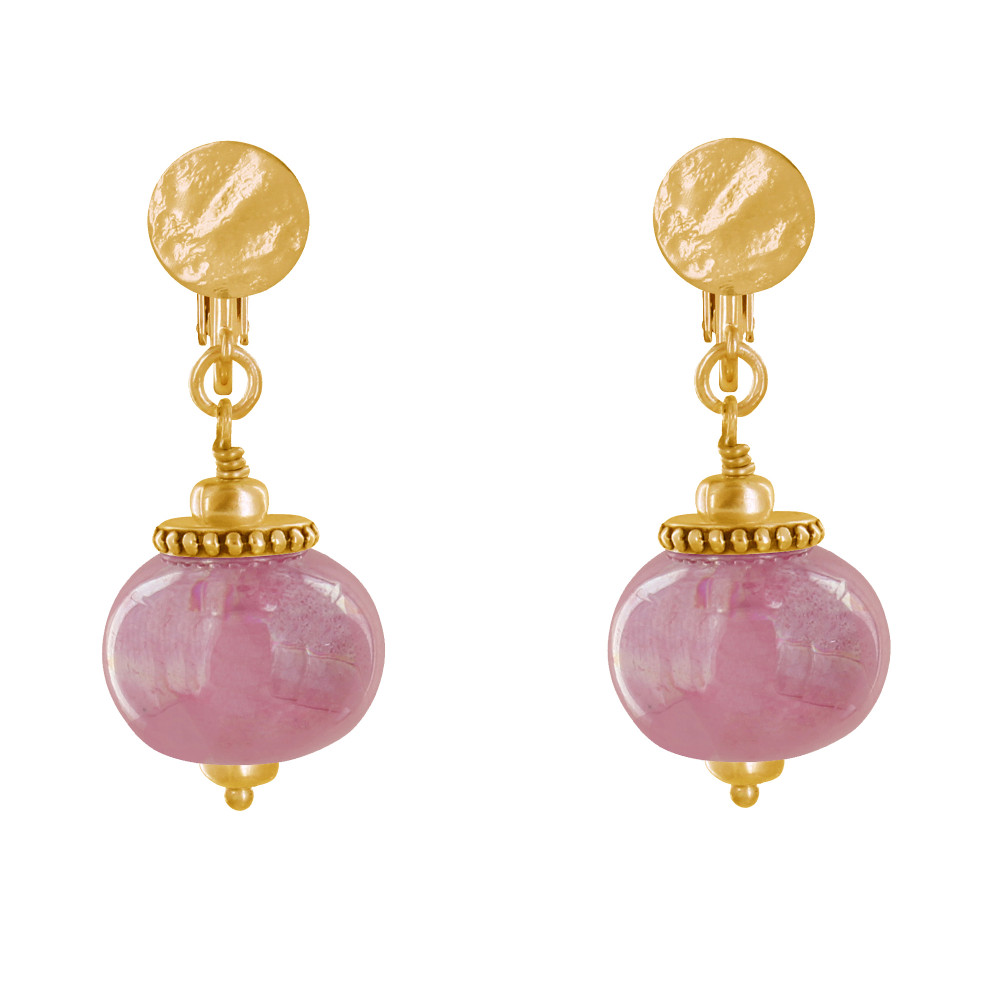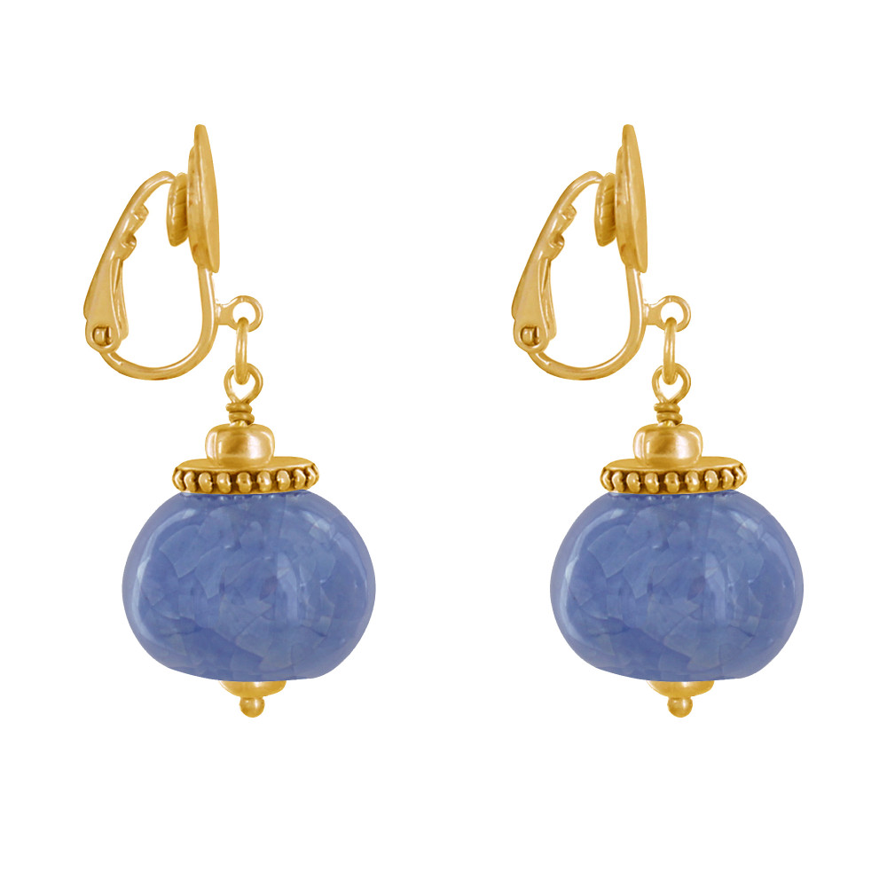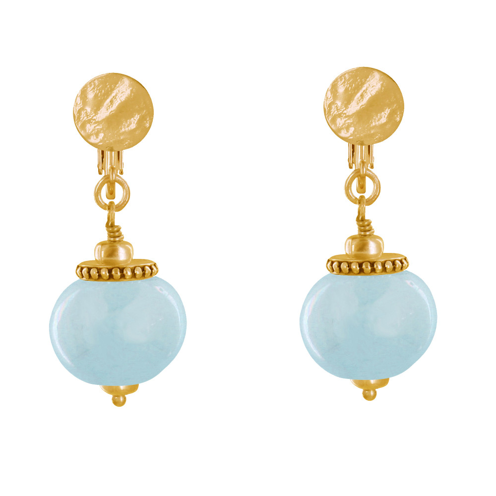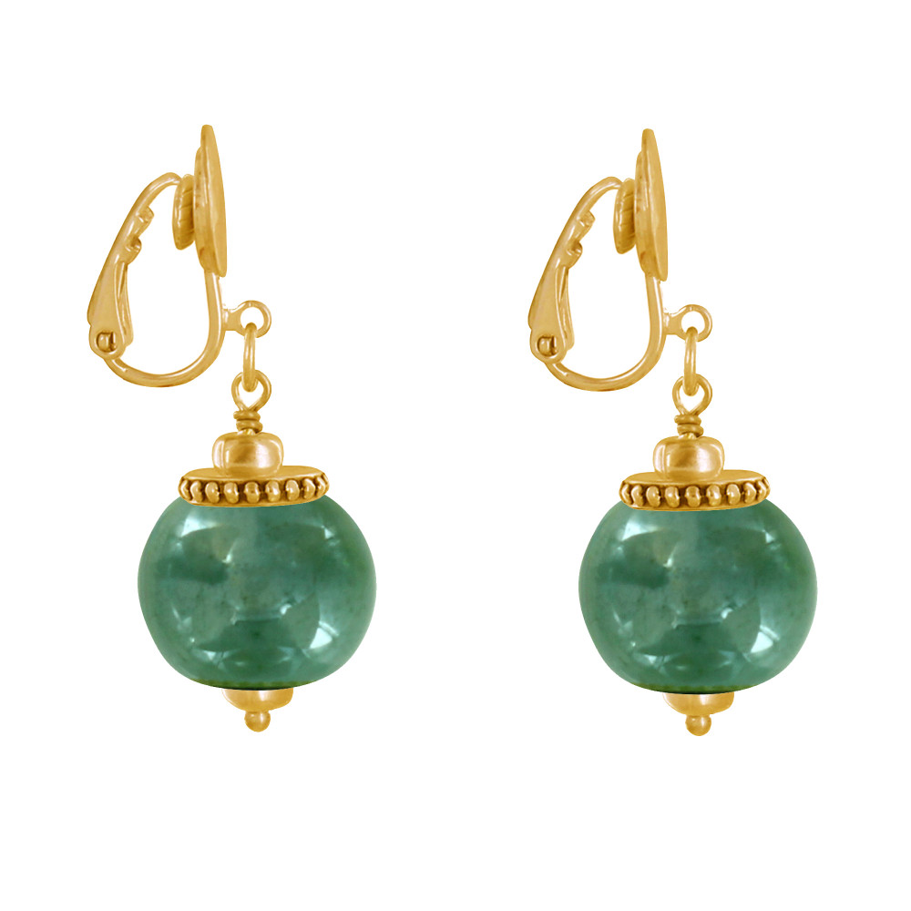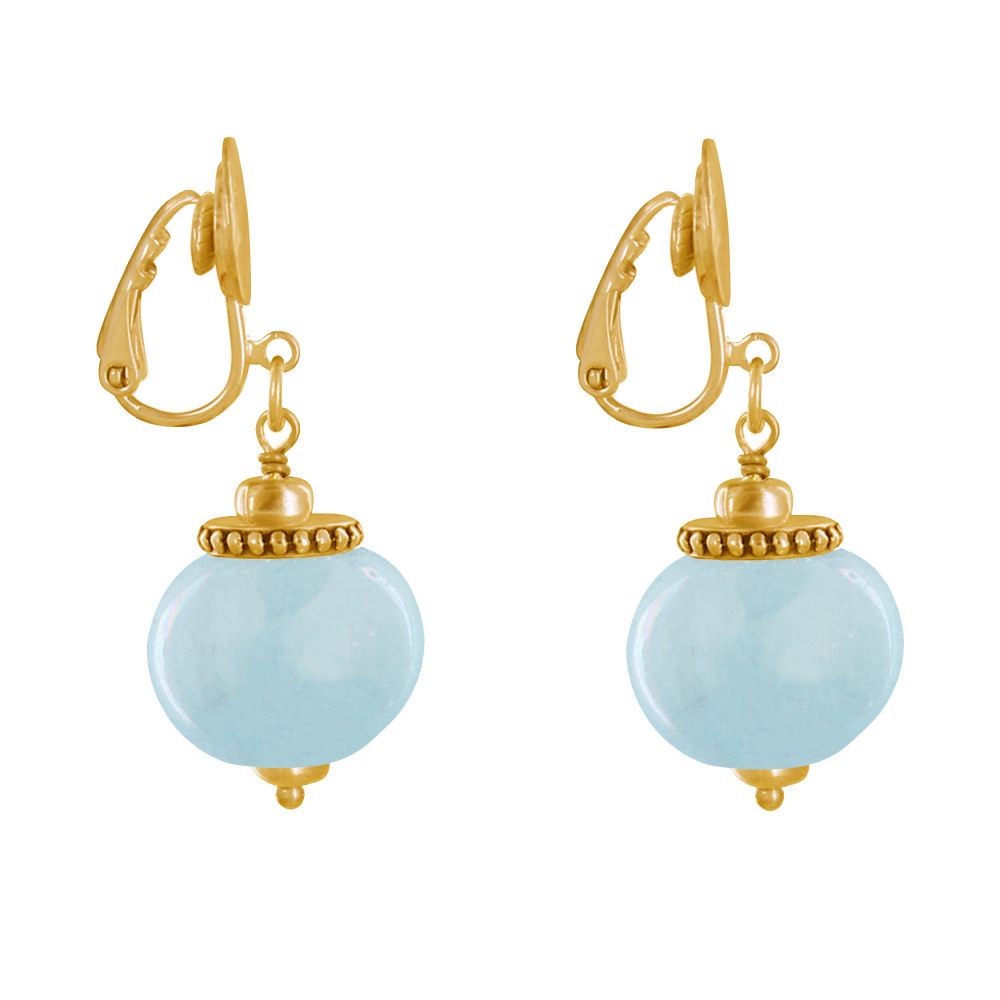 Boucles d'Oreilles Clip Métal Doré et Grosses Perles en Céramique