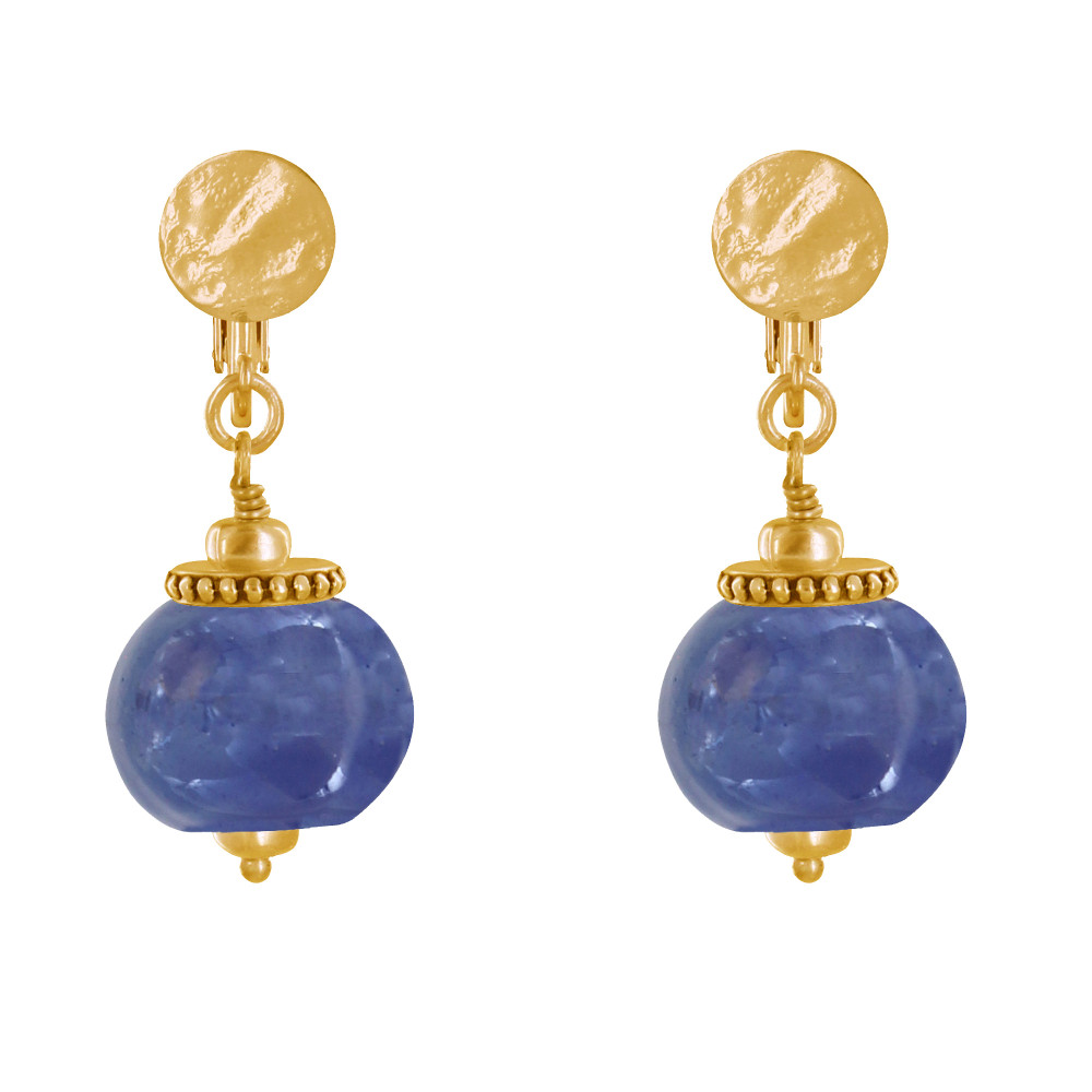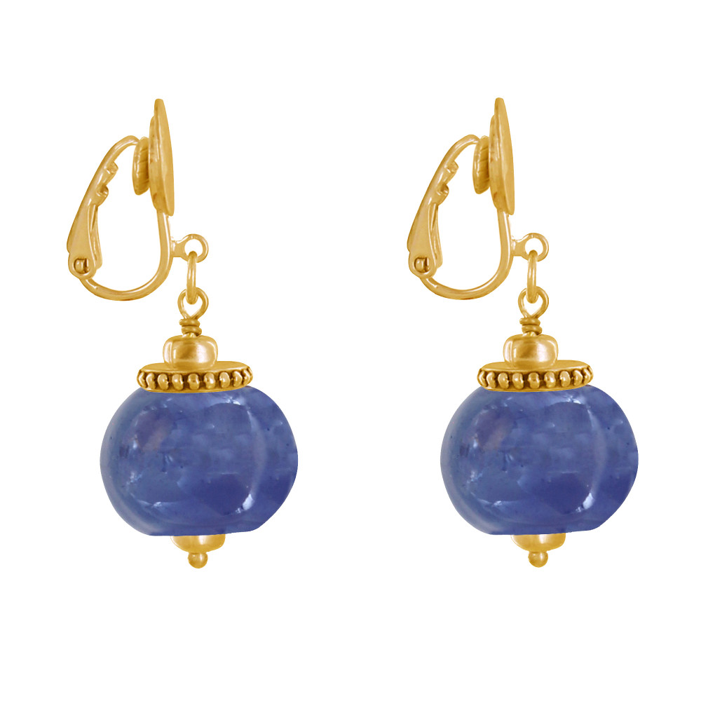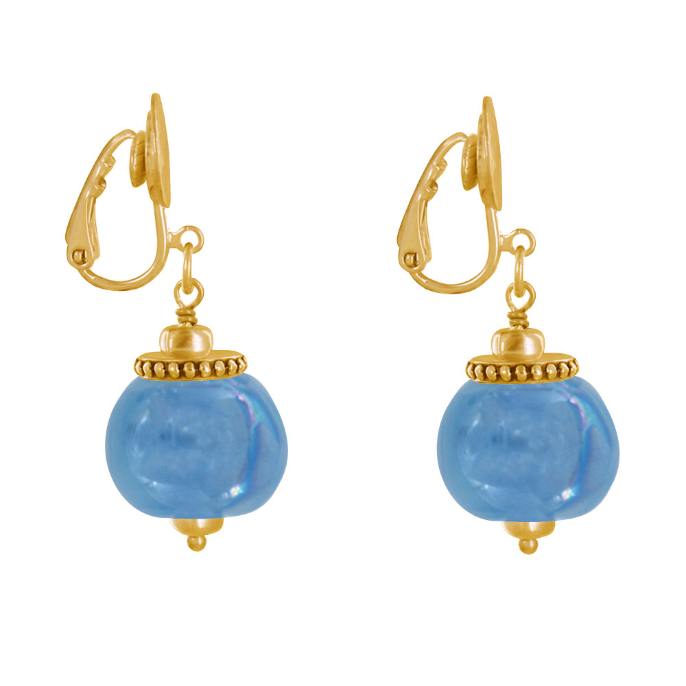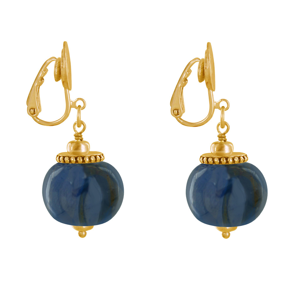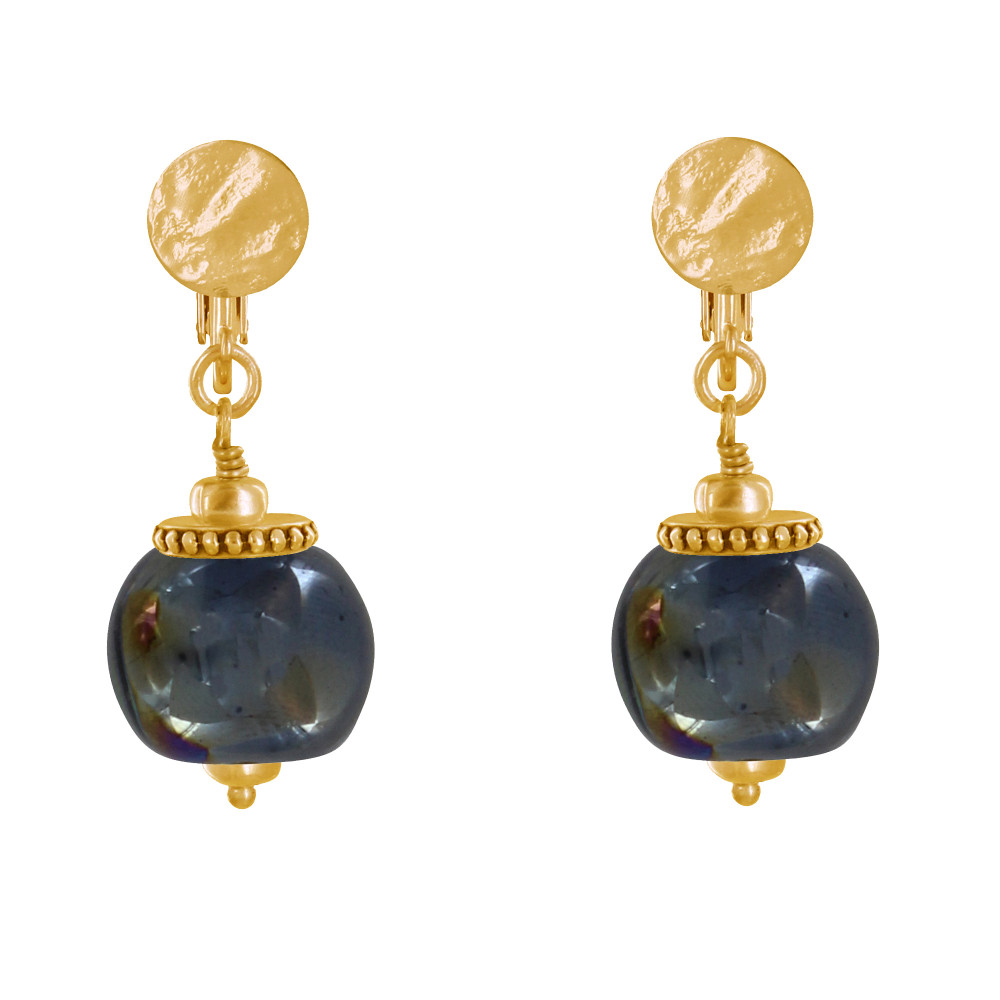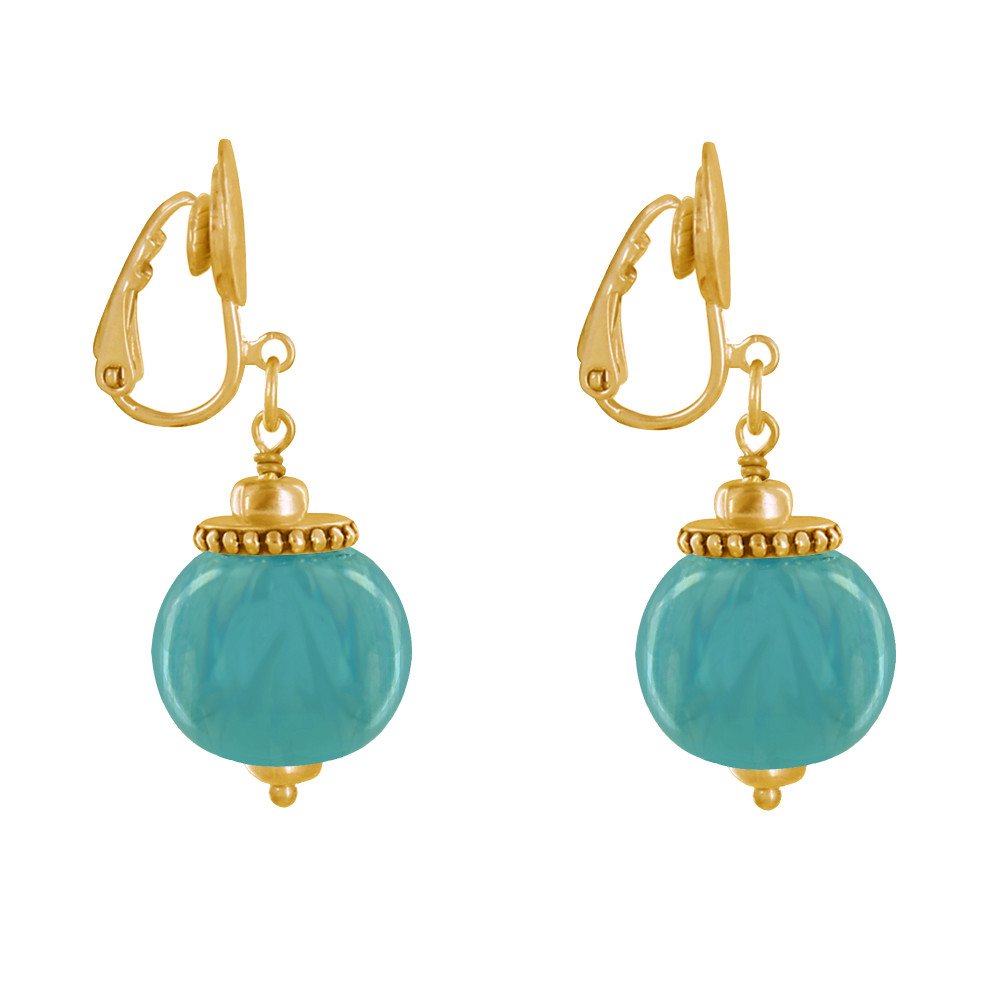 Boucles d'Oreilles Clip Métal Doré et Grosses Perles en Céramique