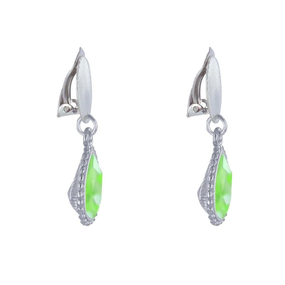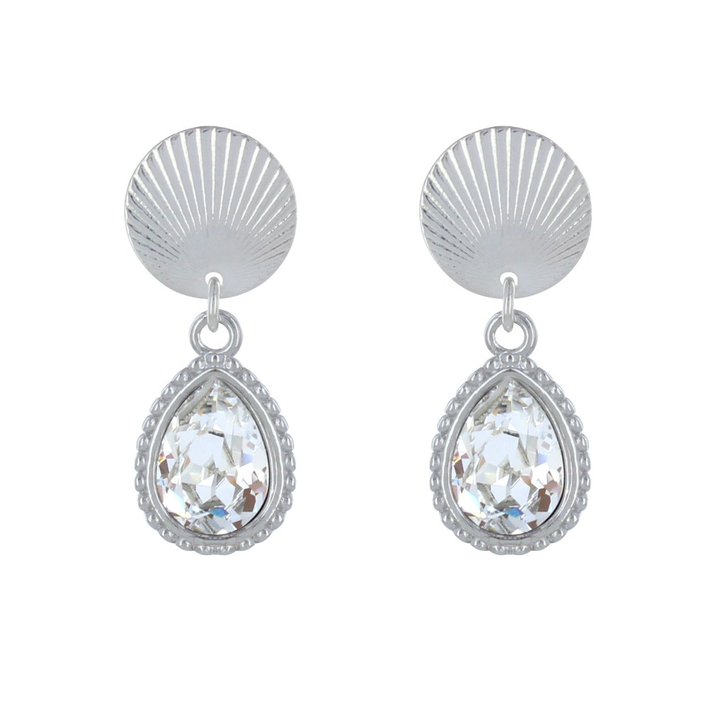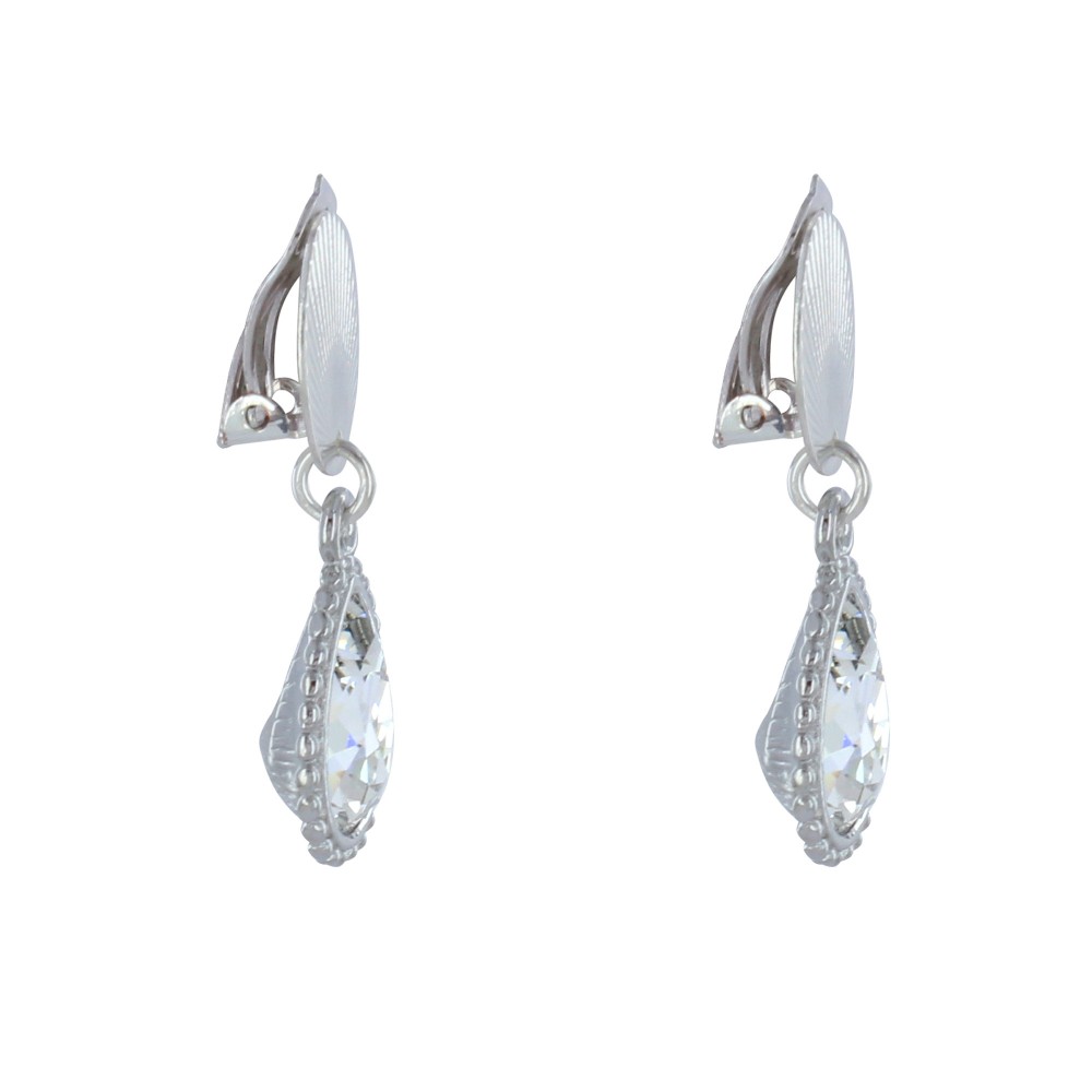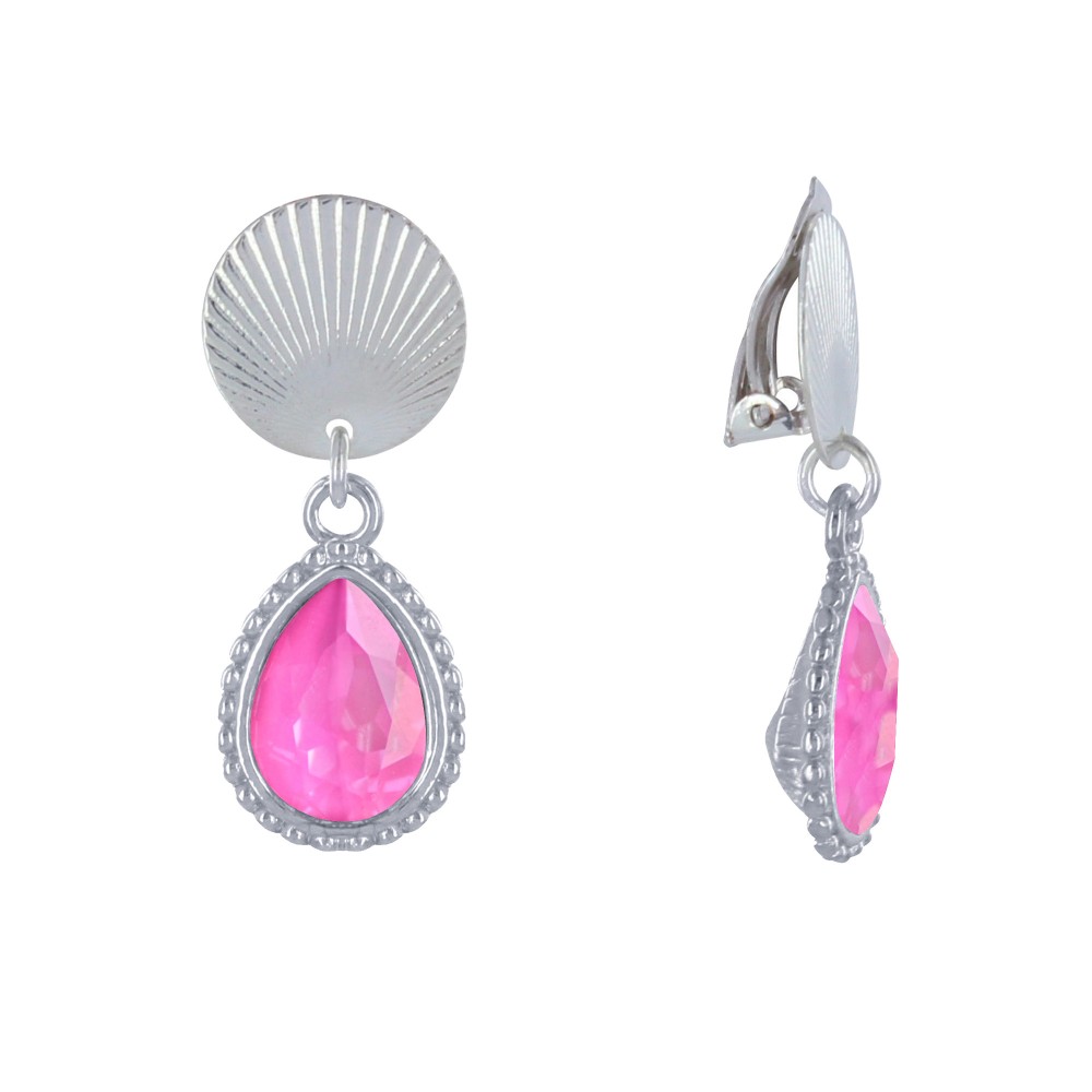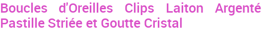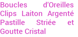 Boucles d'Oreilles Clips Laiton Argenté Pastille Striée et Goutte Cristal