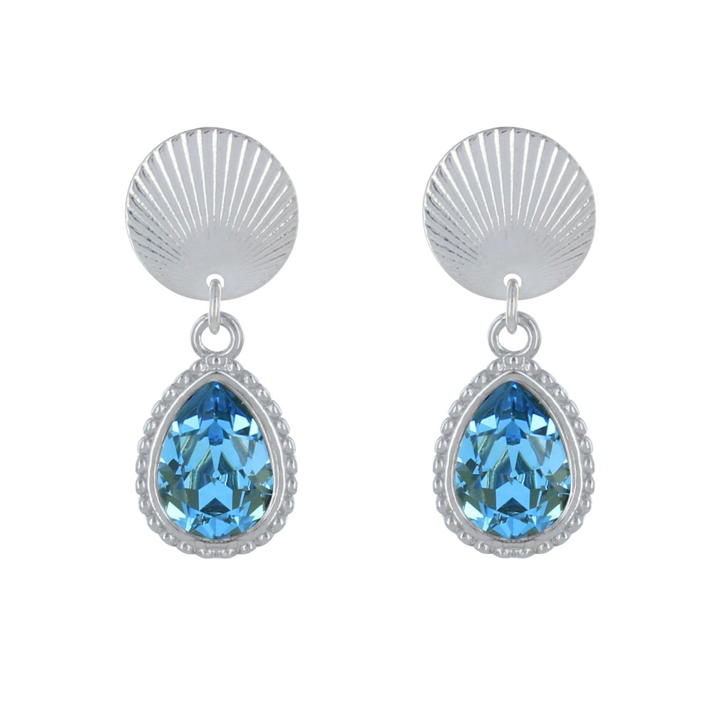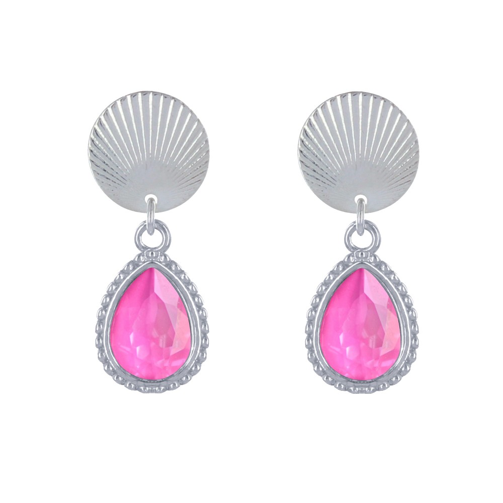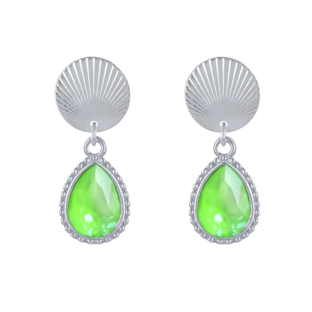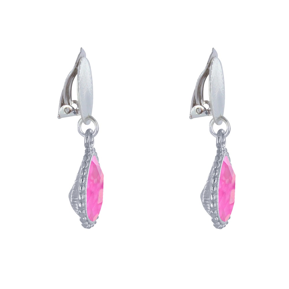 Boucles d'Oreilles Clips Laiton Argenté Pastille Striée et Goutte Cristal