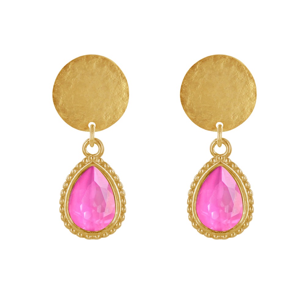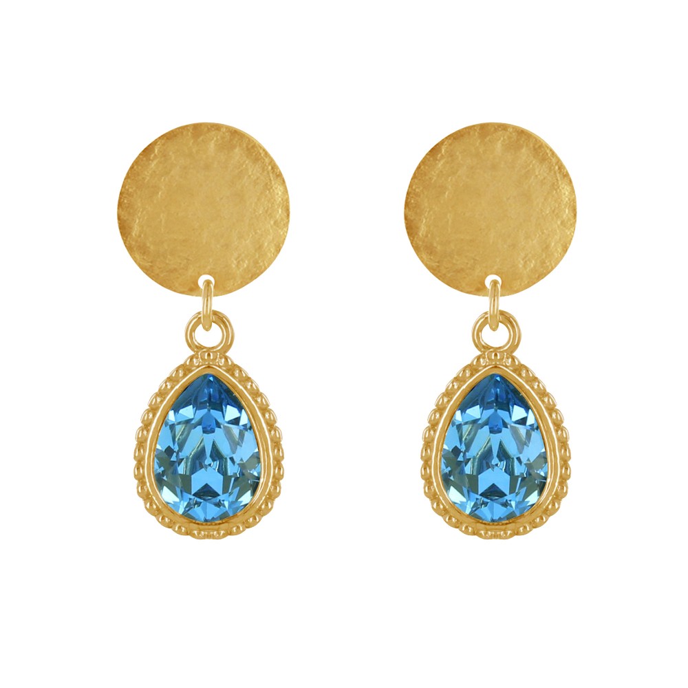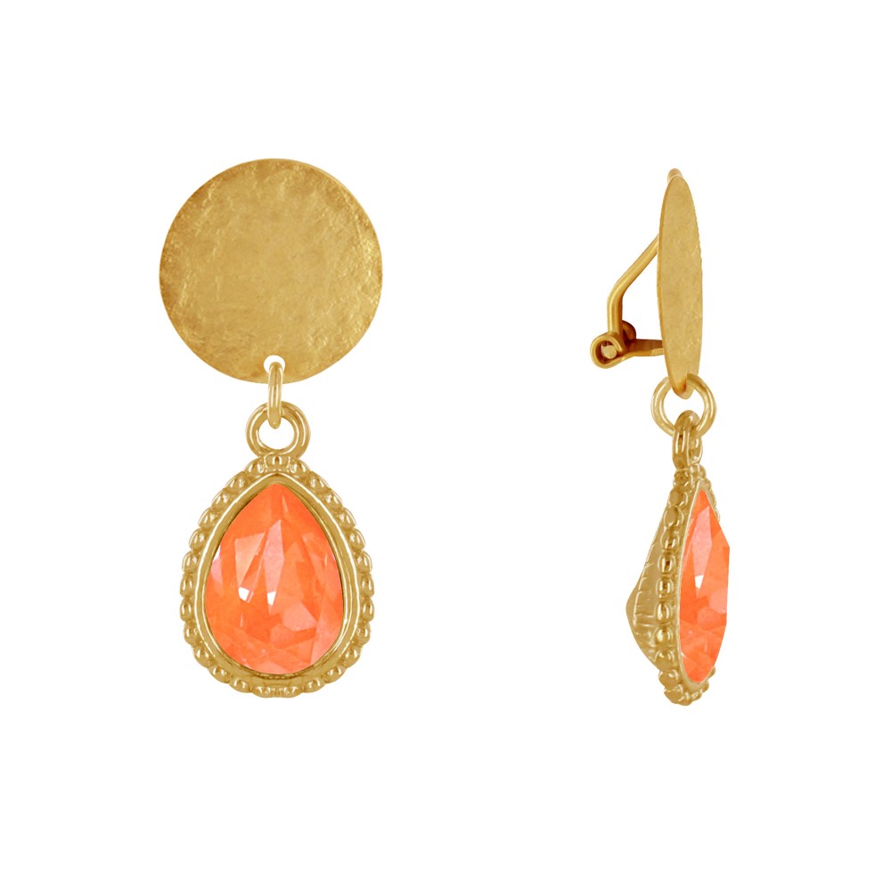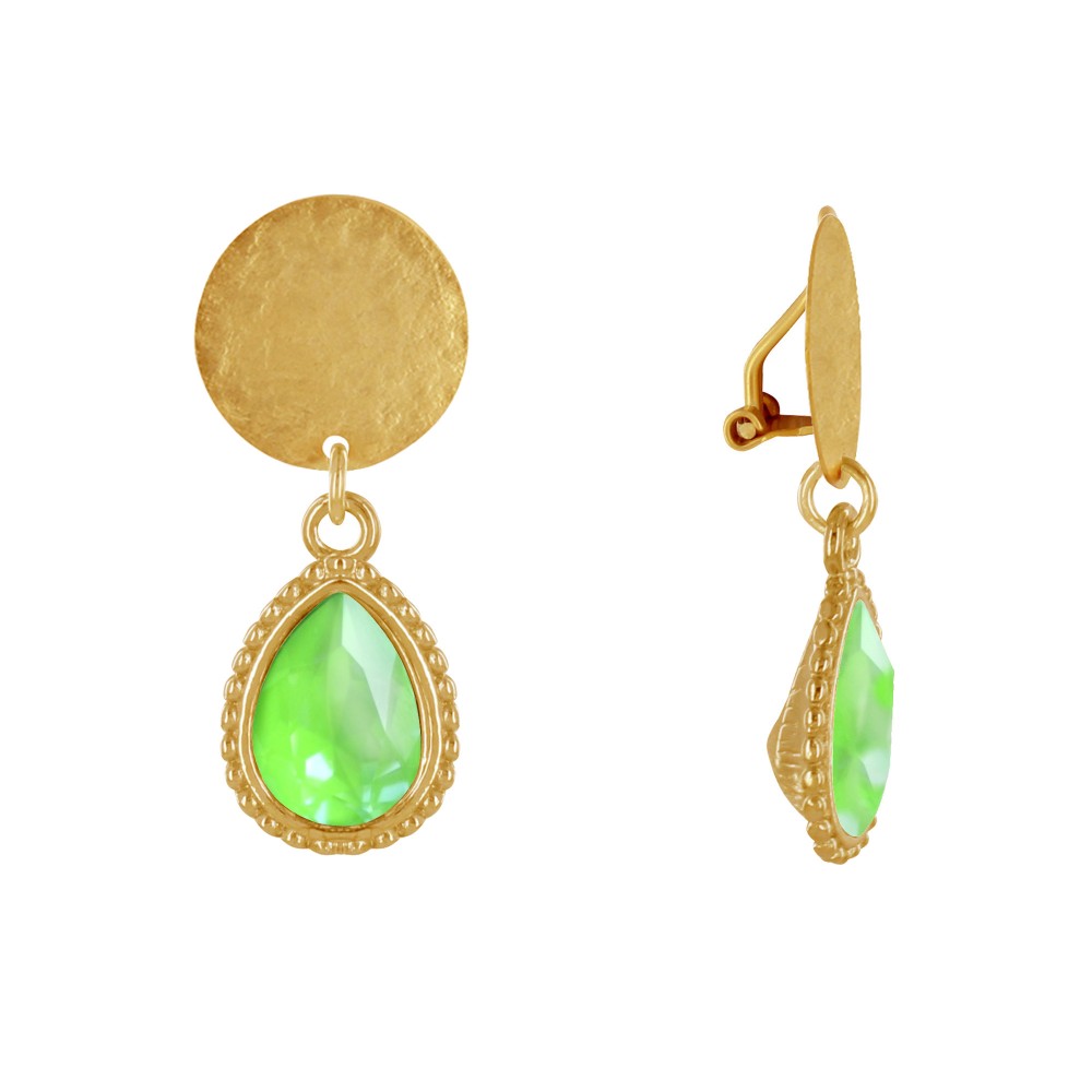 Boucles d'Oreilles Clips Laiton Doré Pastille Brossée et Goutte Cristal