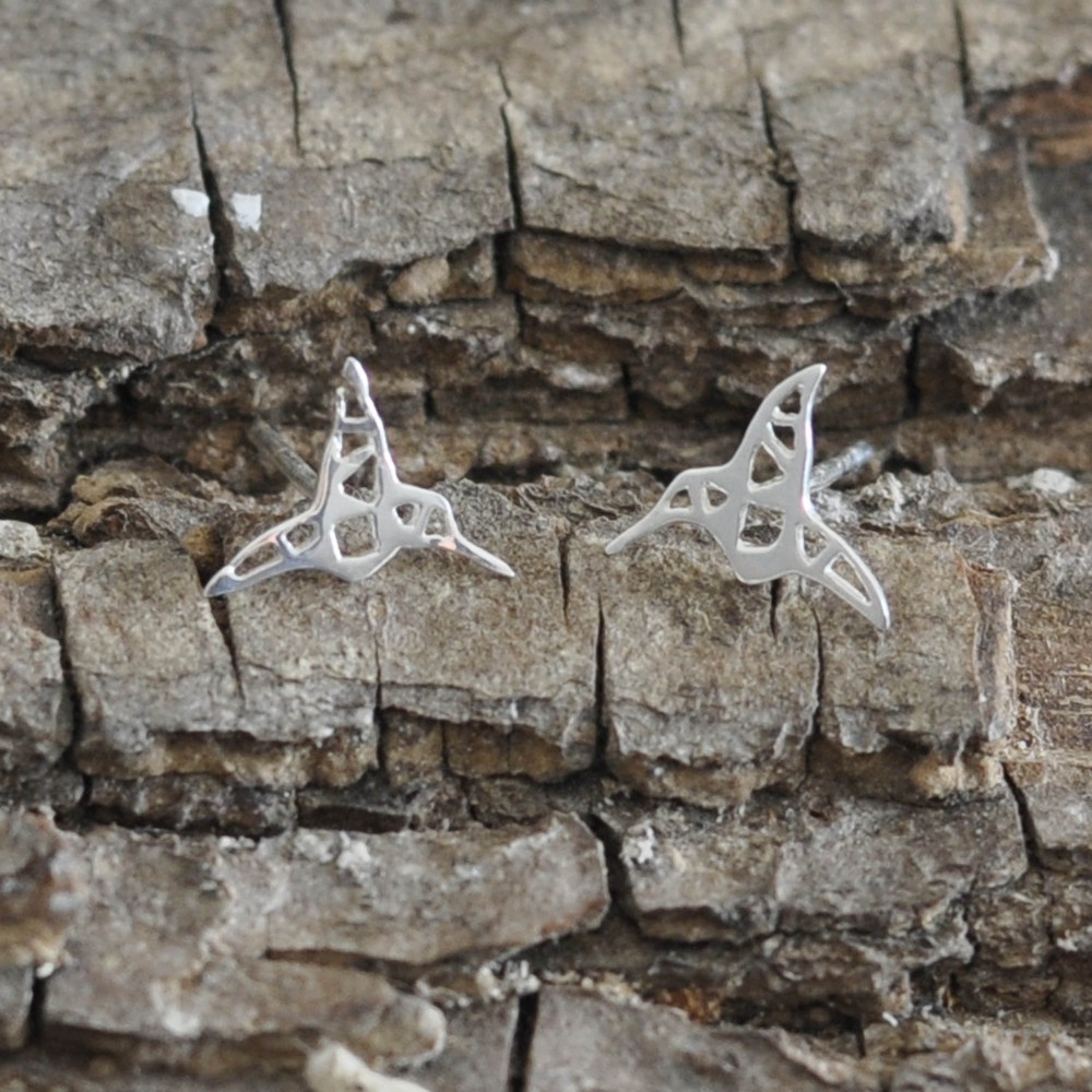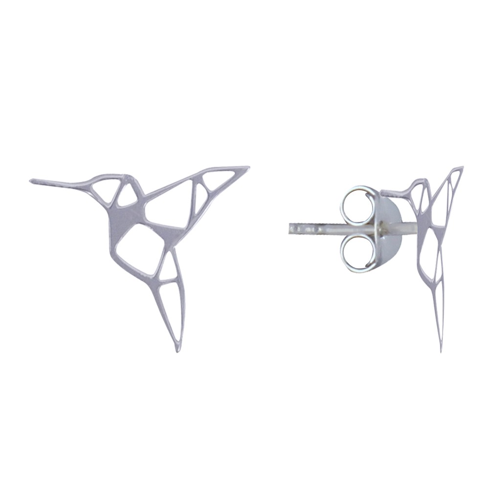 Boucles d'Oreilles Clous Argent 925 Colibri Ajouré