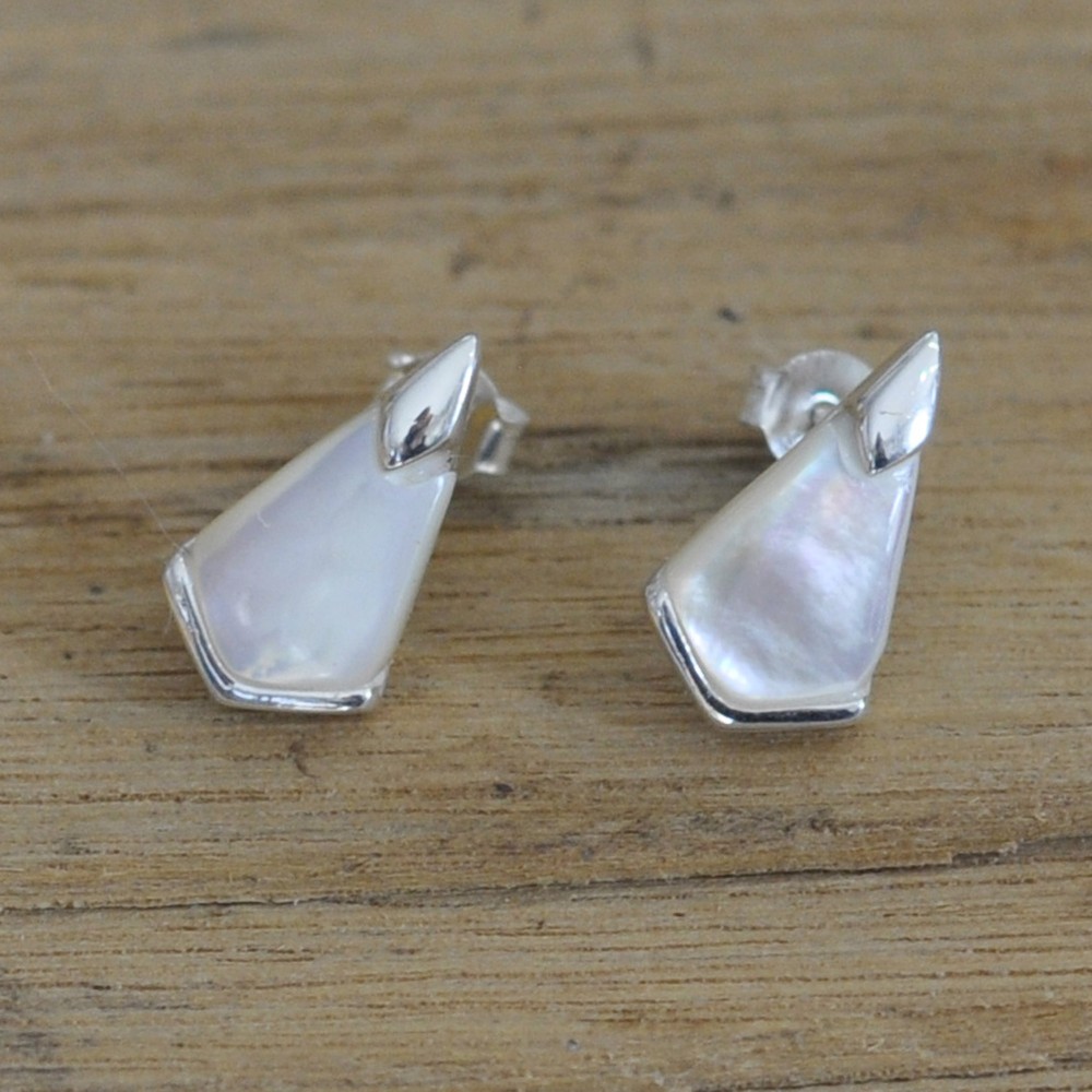 Boucles d'Oreilles Clous Argent 925 Triangle de Nacre
