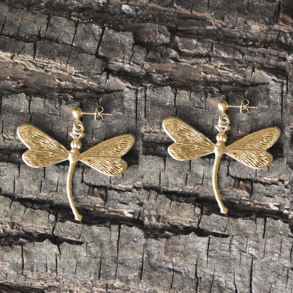 Boucles d'Oreilles Clous en Laiton et Libellule
