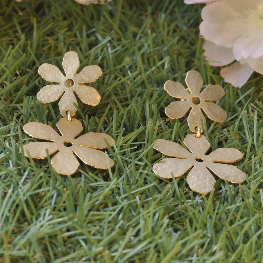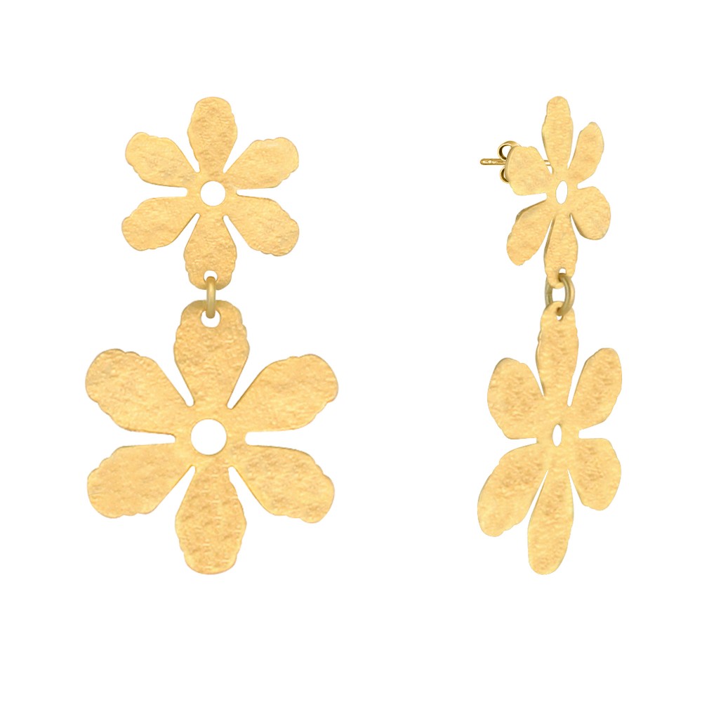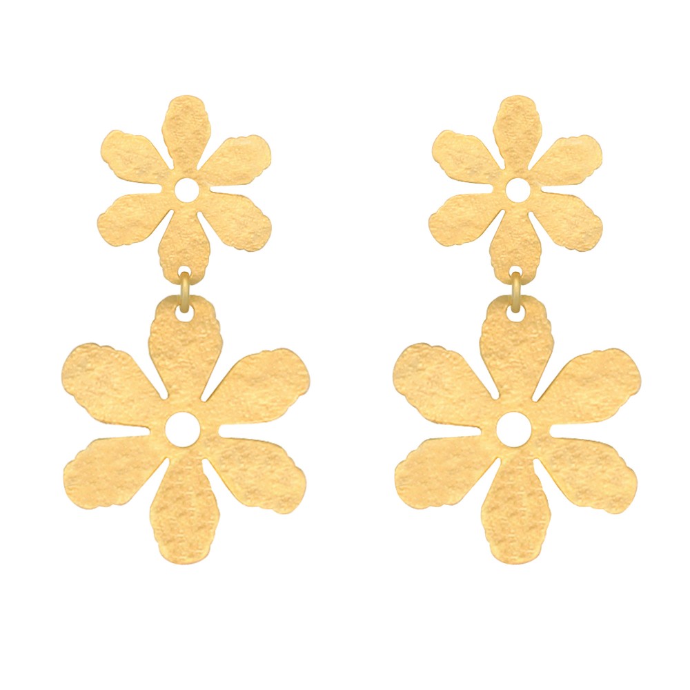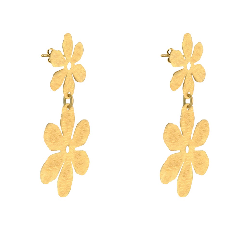 Boucles d'Oreilles Clous Laiton Doré Deux Fleurs Brossées