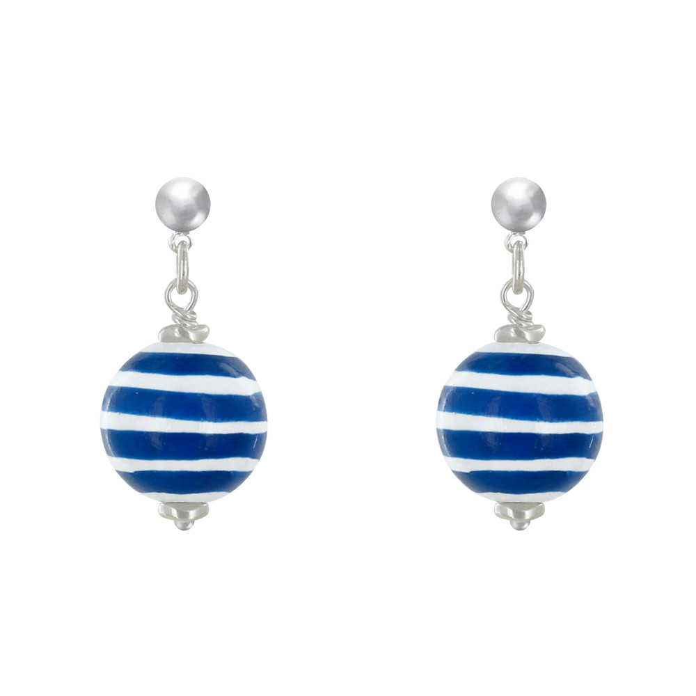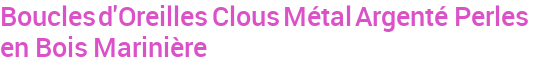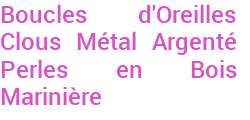 Boucles d'Oreilles Clous Métal Argenté Perles en Bois Marinière