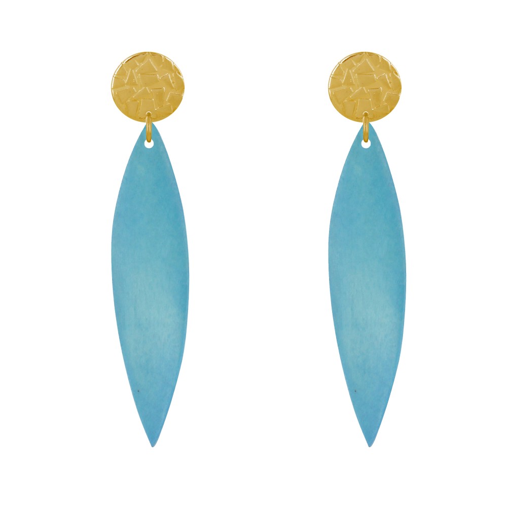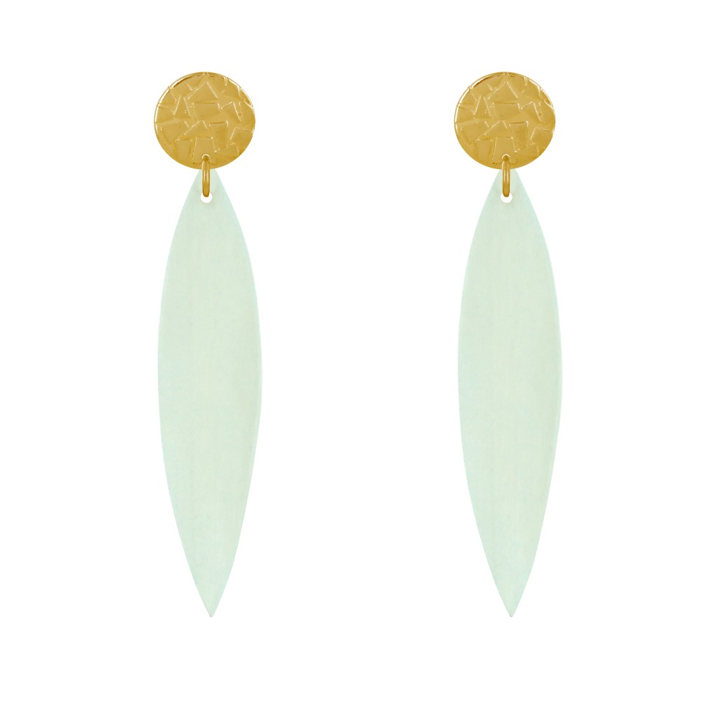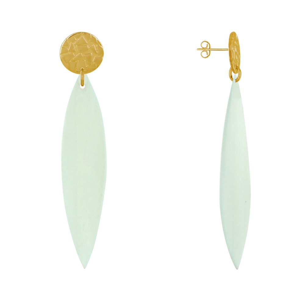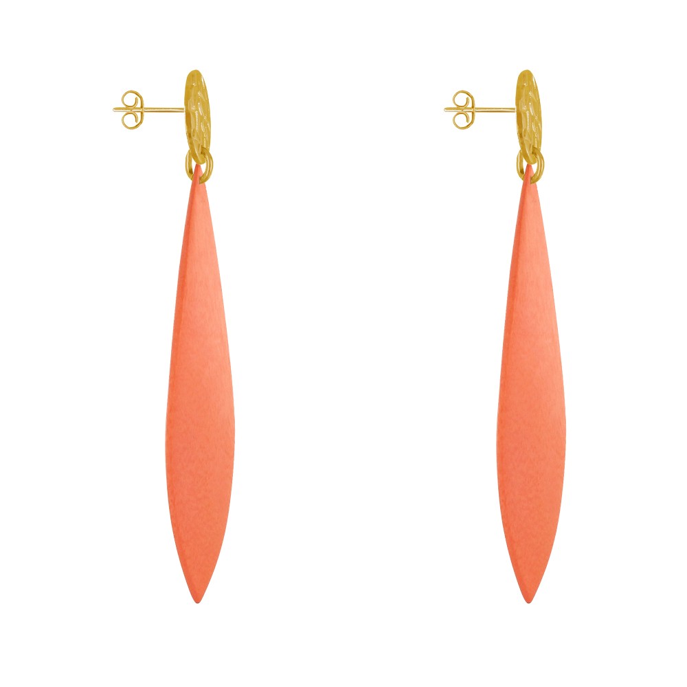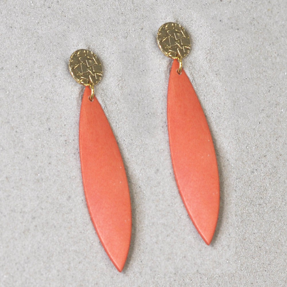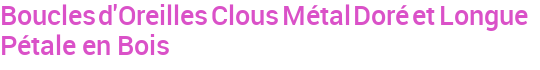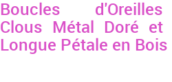 Boucles d'Oreilles Clous Métal Doré et Longue Pétale en Bois