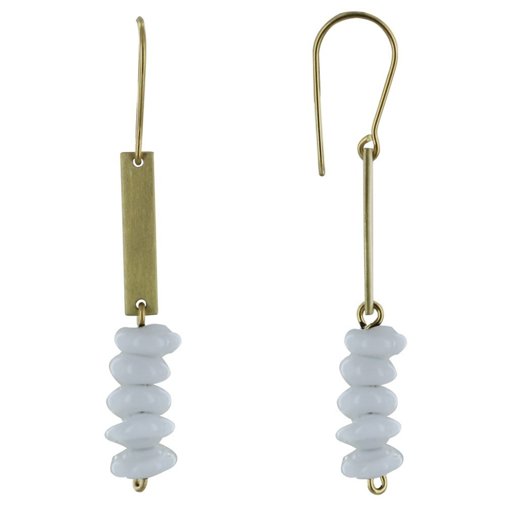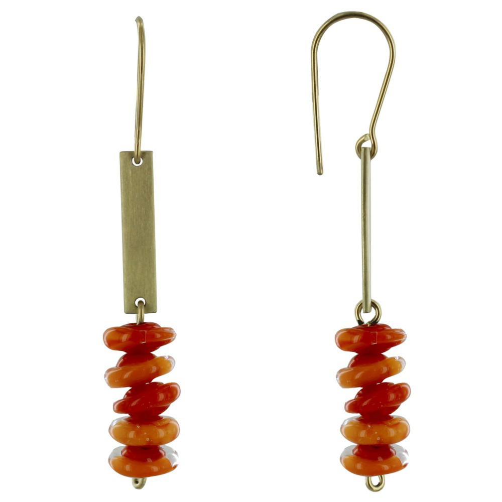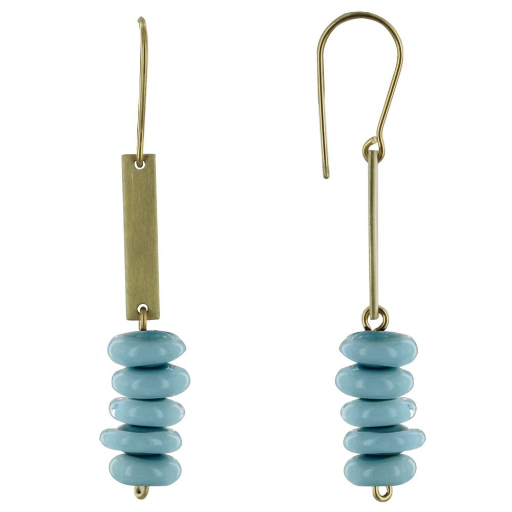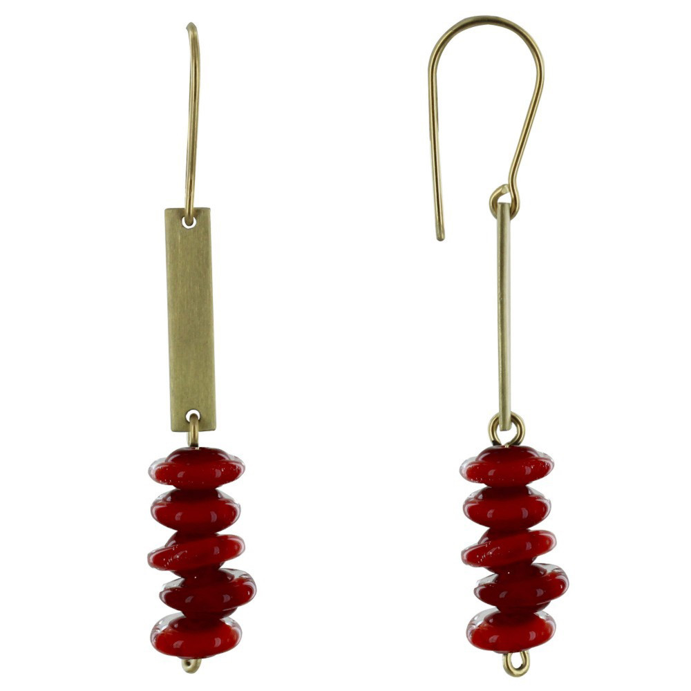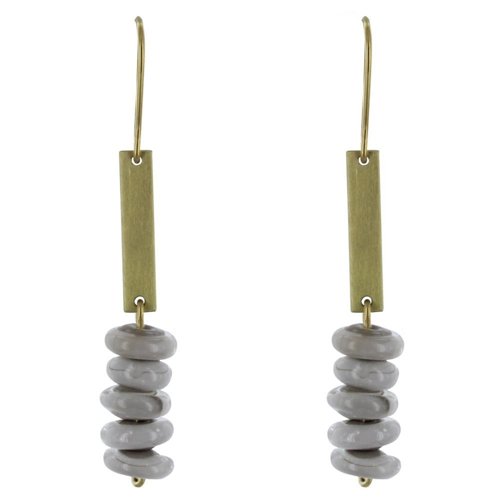 Boucles d'Oreilles Laiton Barrette et Petits Disques de Verre - Classics