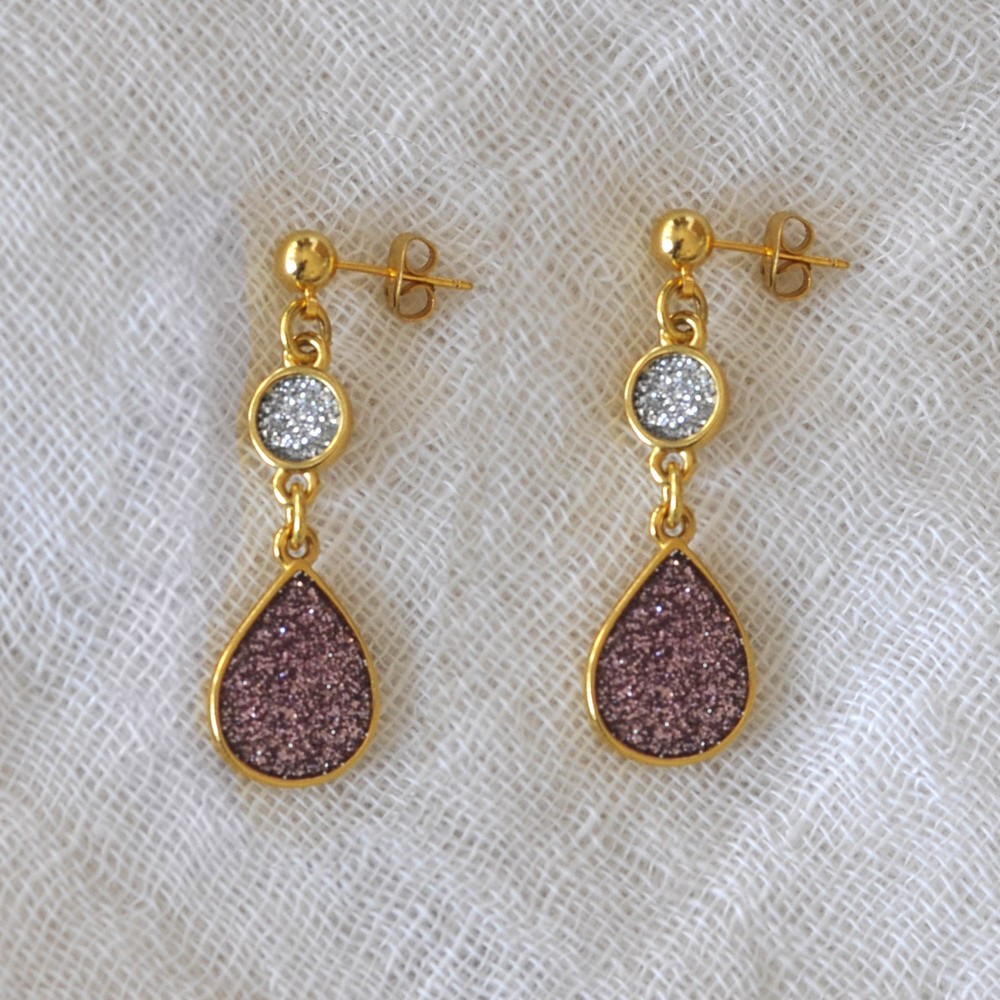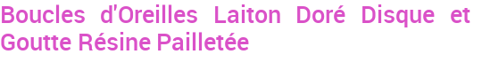 Boucles d'Oreilles Laiton Doré Disque et Goutte Résine Pailletée