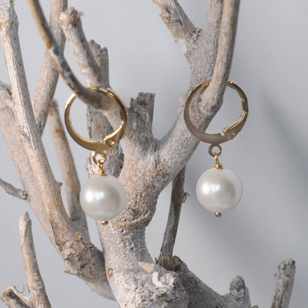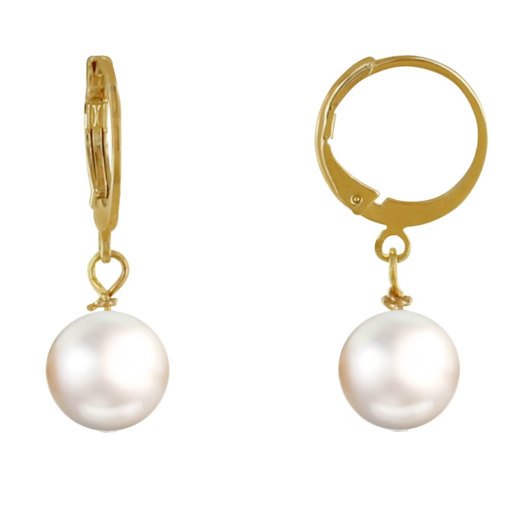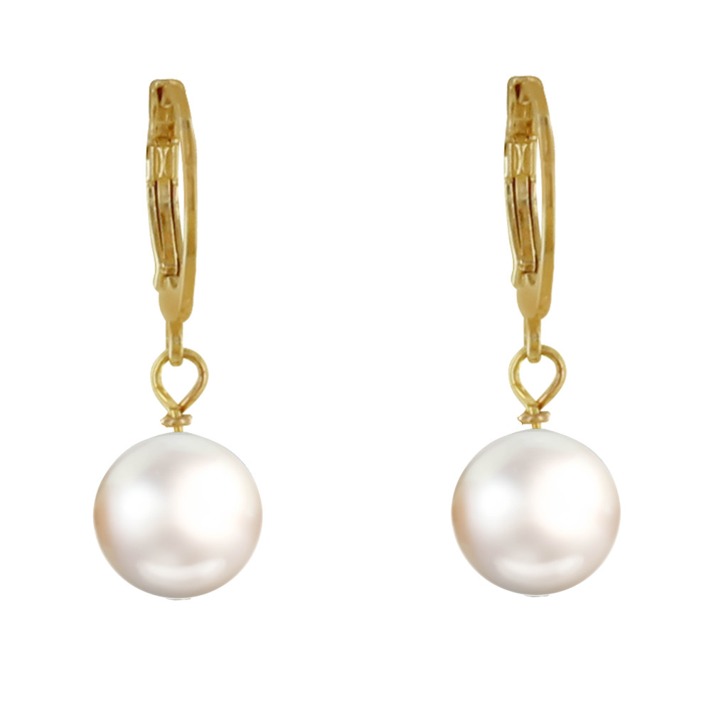 Boucles d'Oreilles Mini Créoles Acier Doré et Perle de Culture
