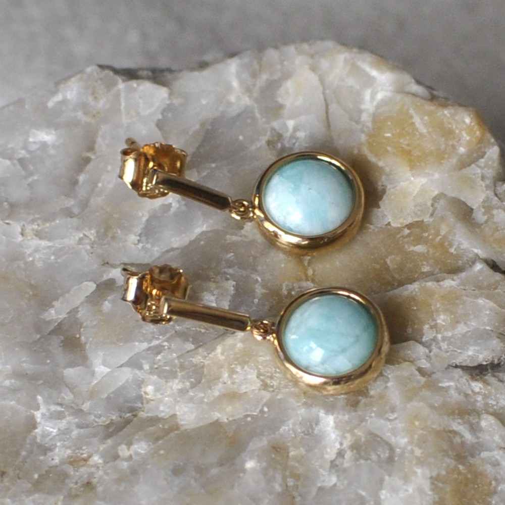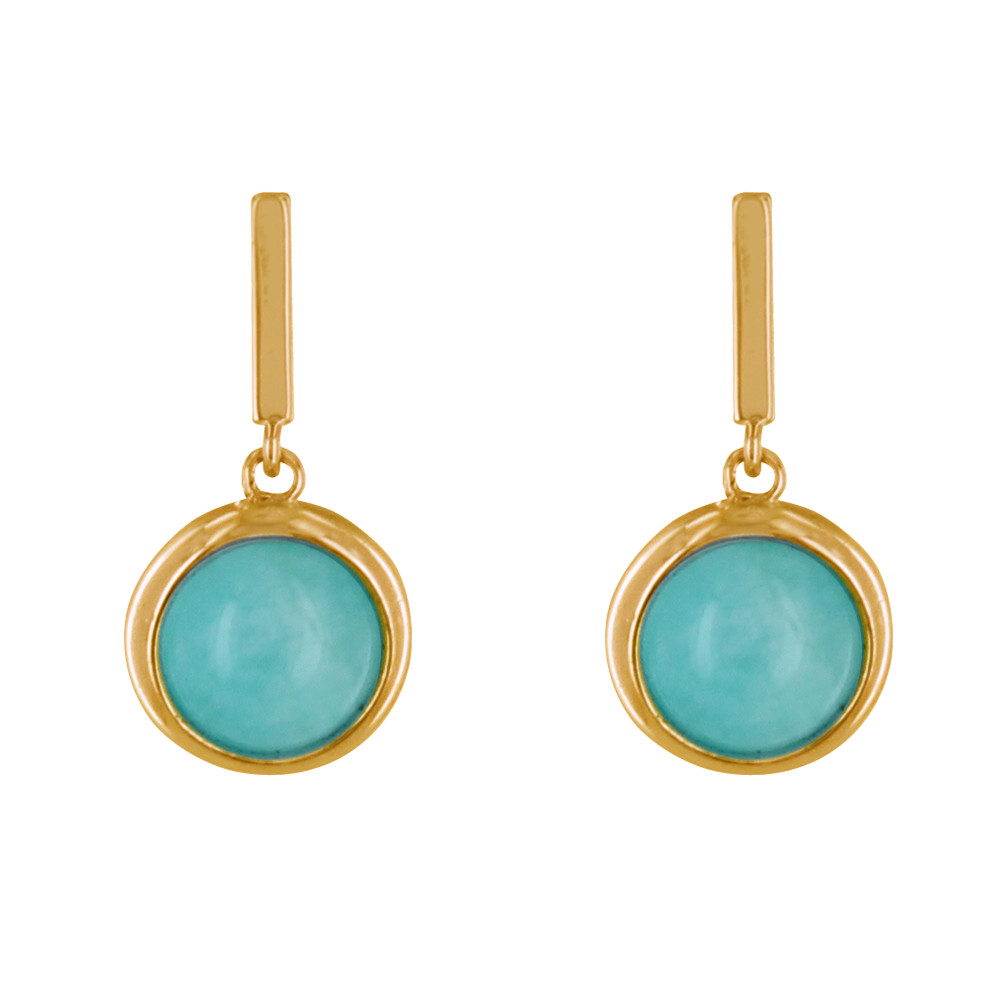 Boucles d'Oreilles Plaqué Or Barre et Demi Perle d'Amazonite