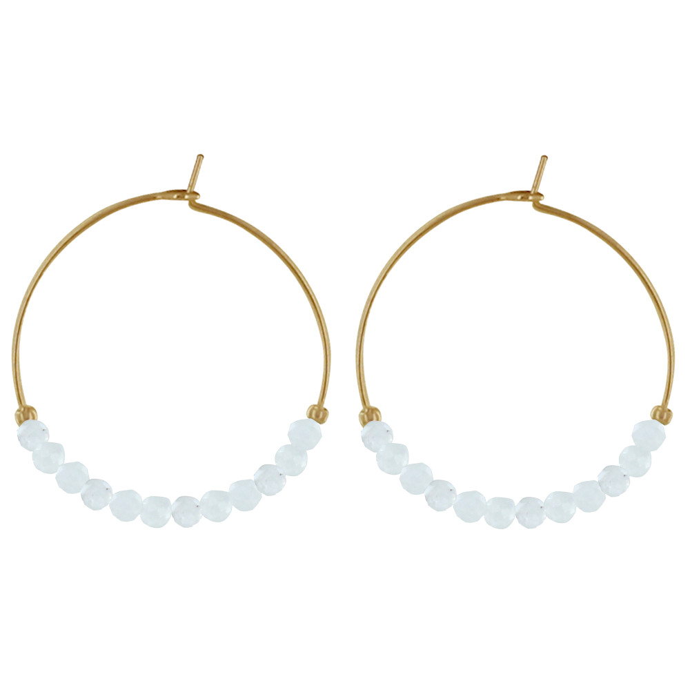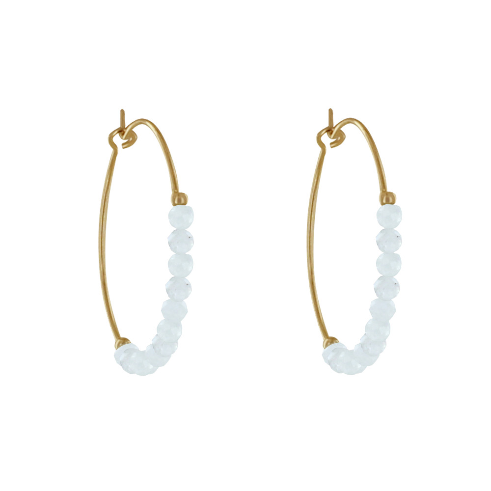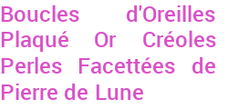 Boucles d'Oreilles Plaqué Or Créoles Perles Facettées de Pierre de Lune