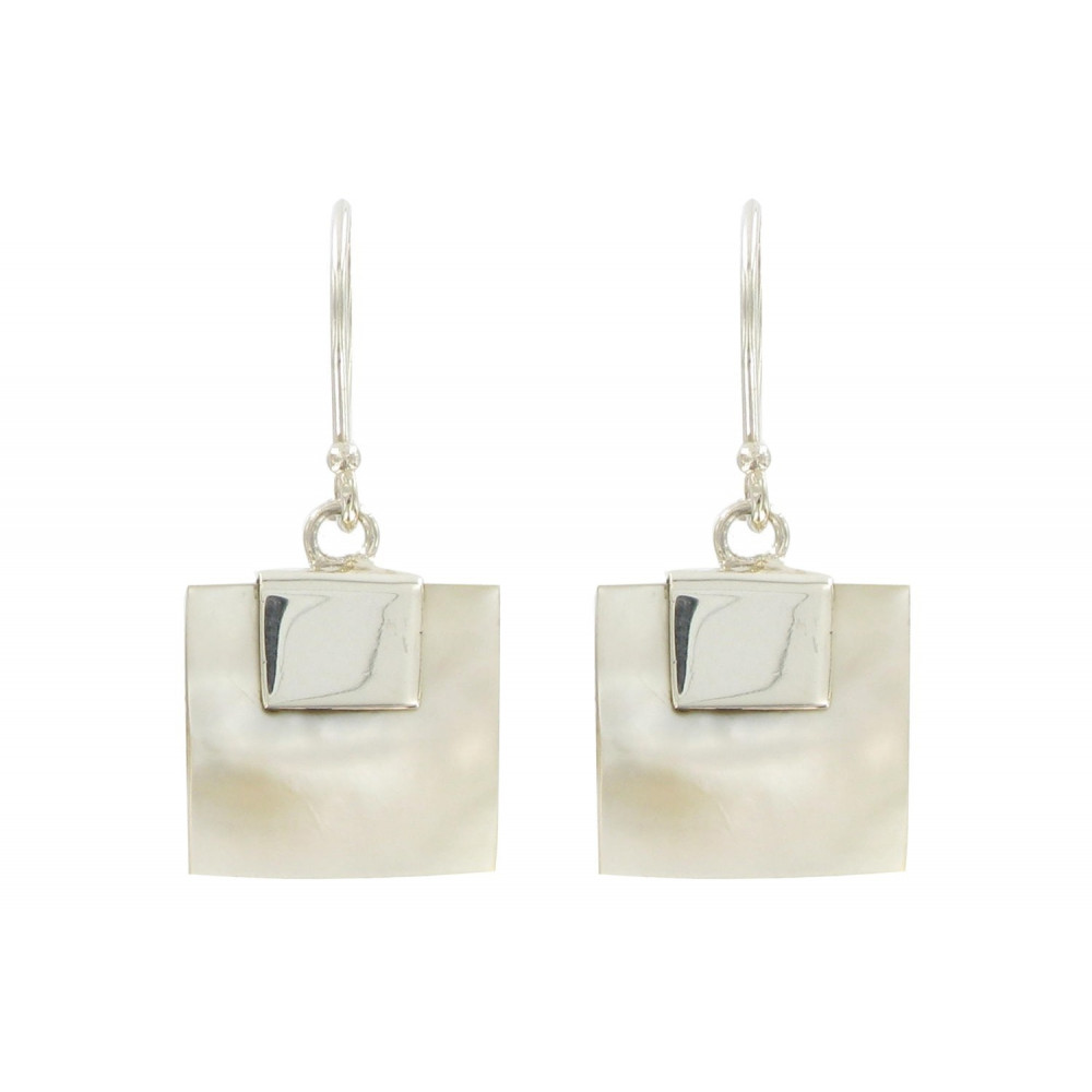 Boucles d'Oreilles Argent 925 et Carré de Nacre