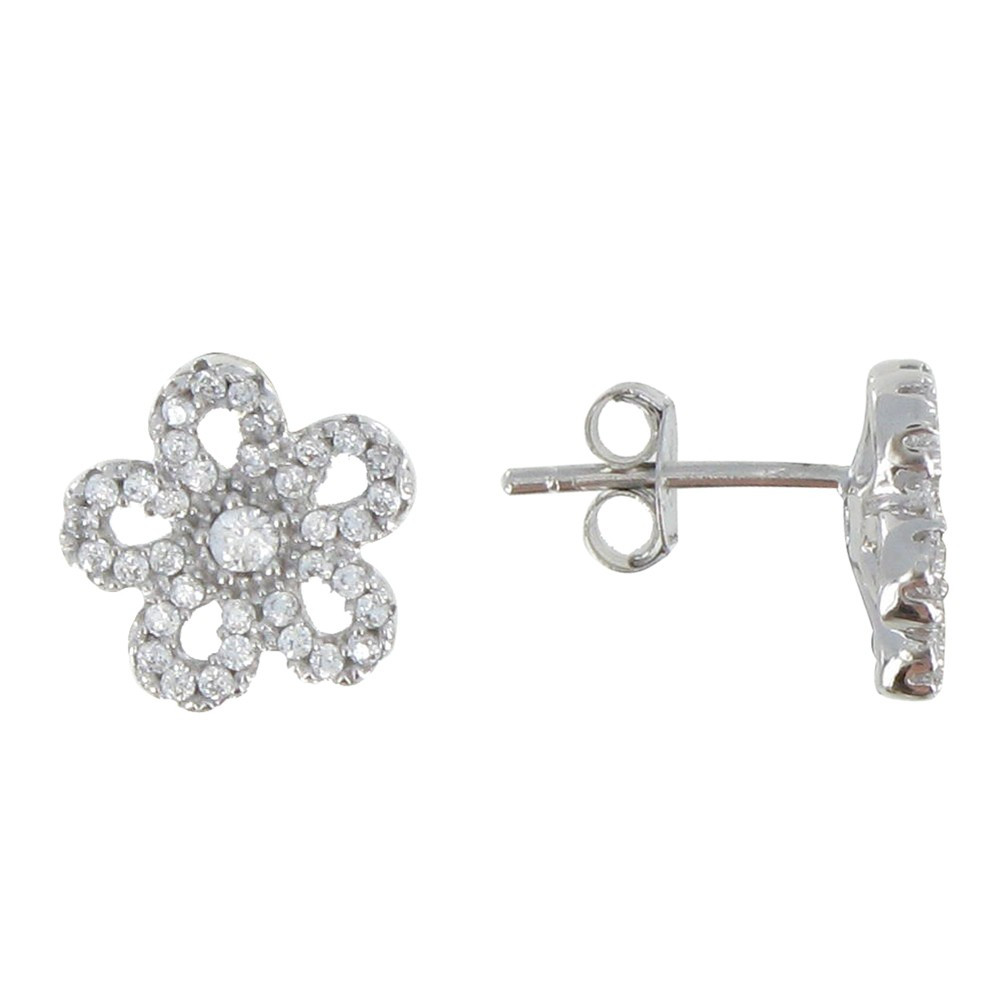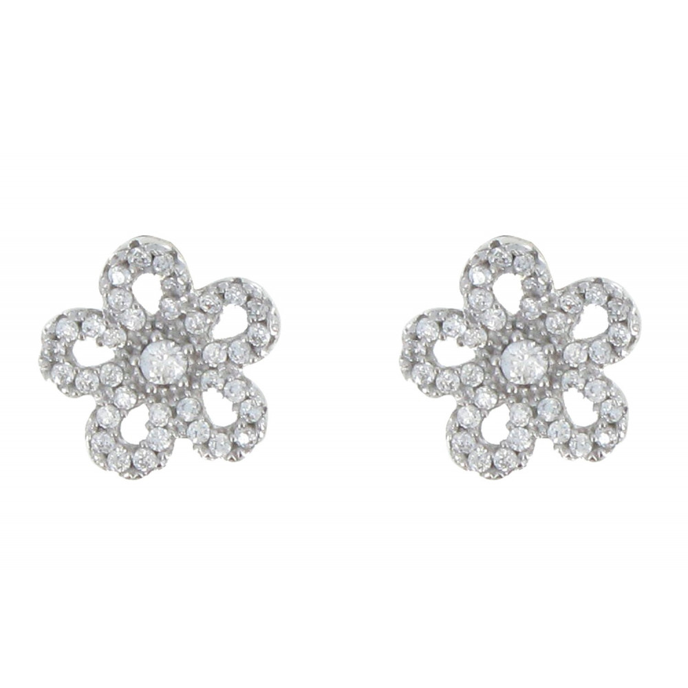 Boucles d'Oreilles Argent 925 Marguerite et Strass