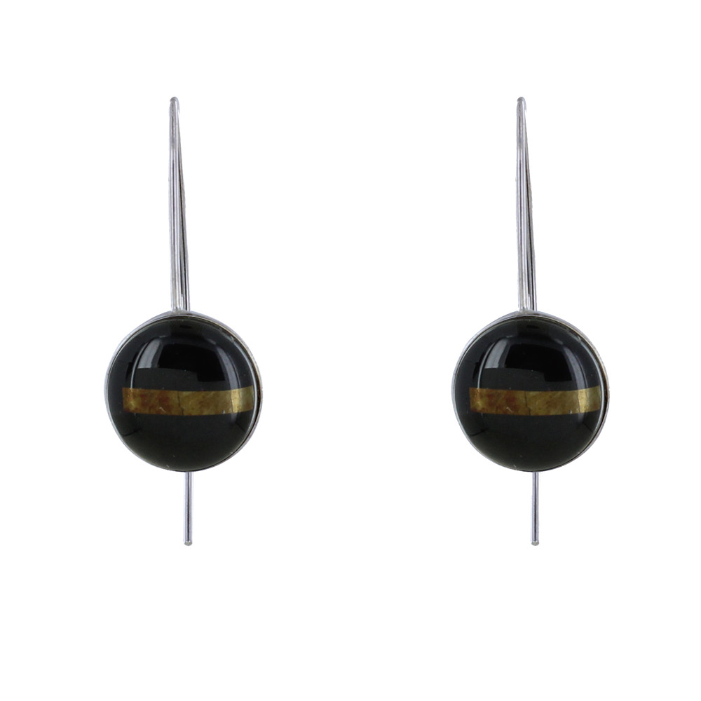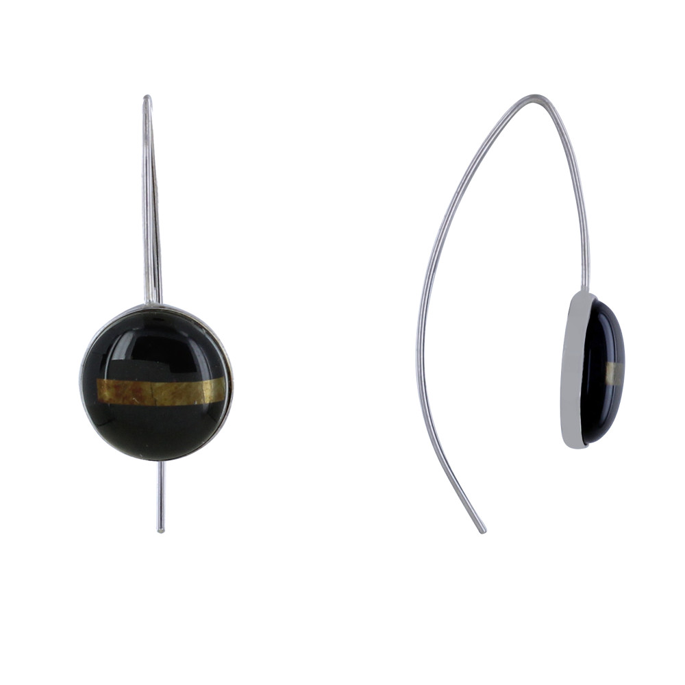 Boucles d'Oreilles Argent 925 Rayées Noir et Argent