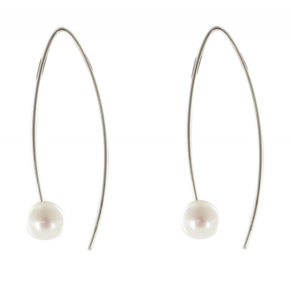 Boucles d'Oreilles Argent 925 Rhodié Crochet Perle de Culture 6 mm - Classics