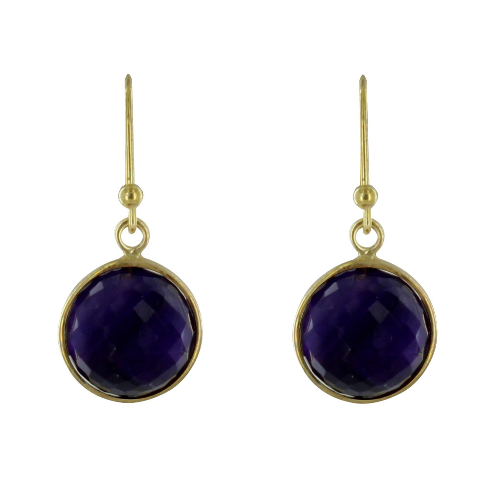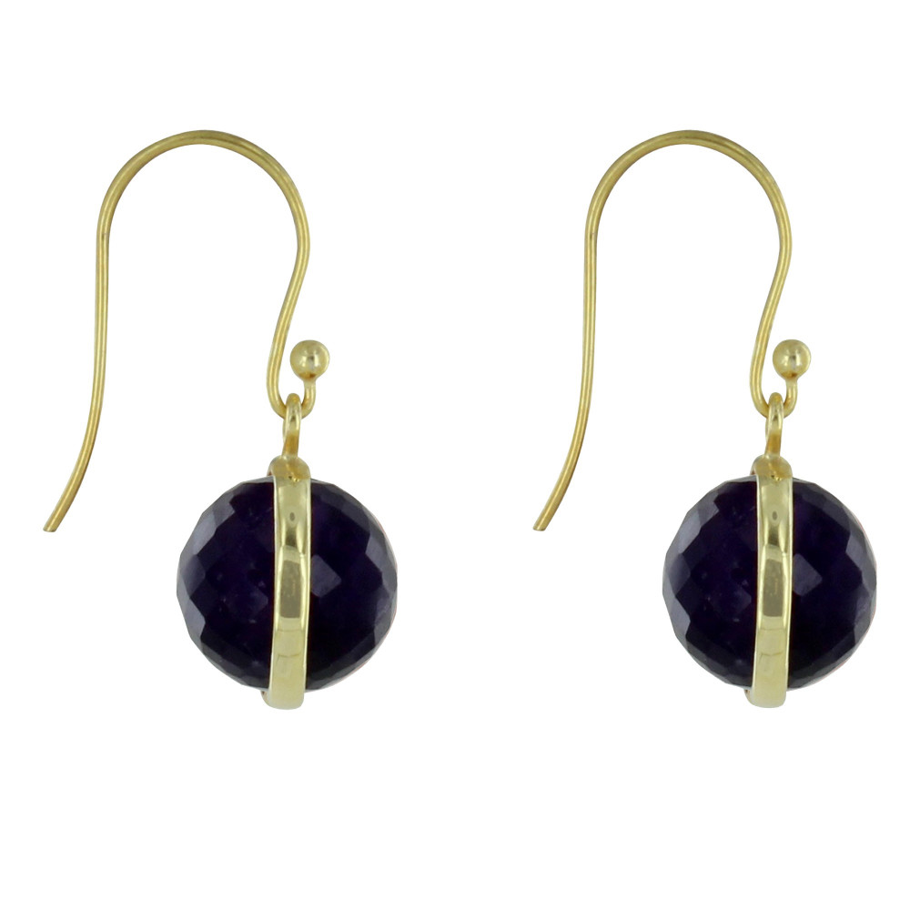 Boucles d'Oreilles Crochet Argent 925 Doré Sphère d'Améthyste