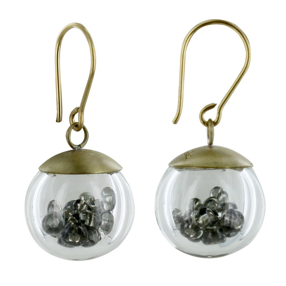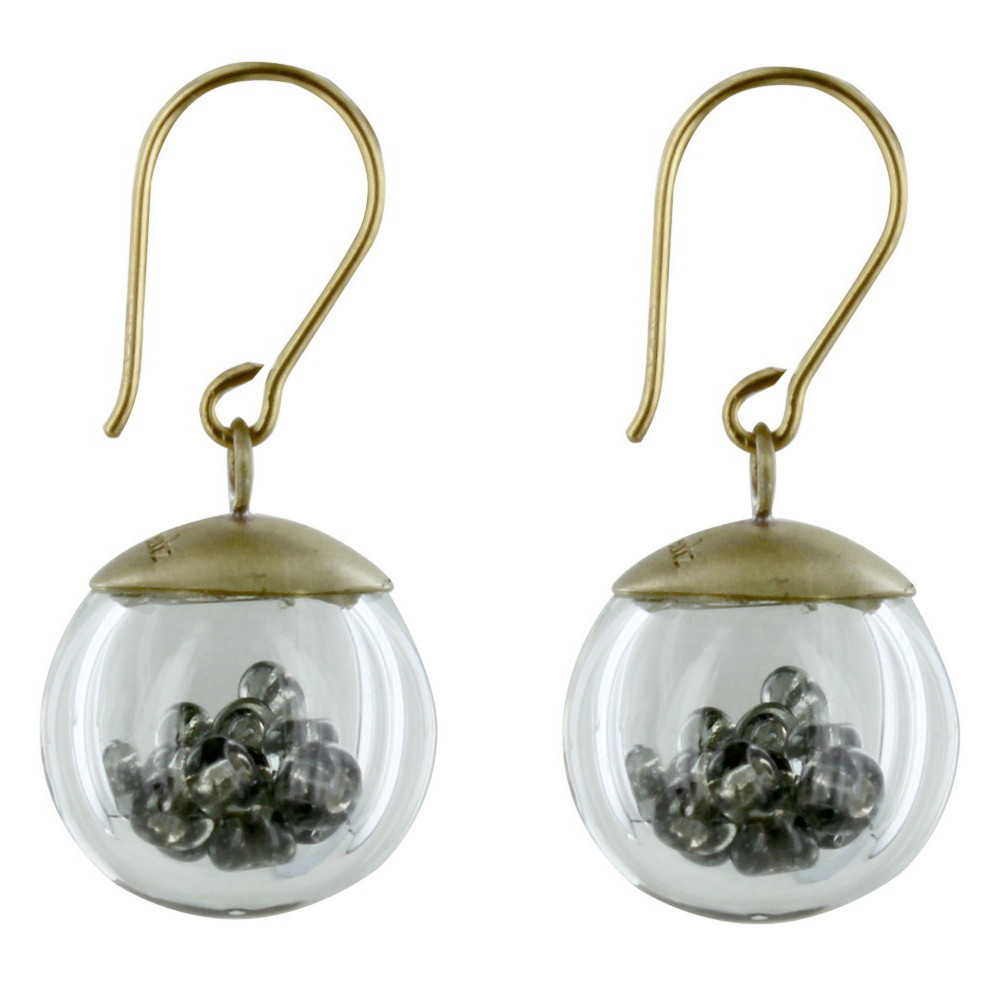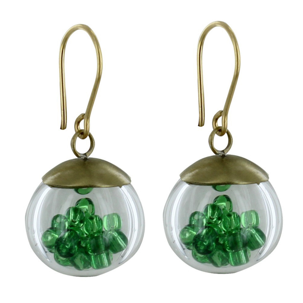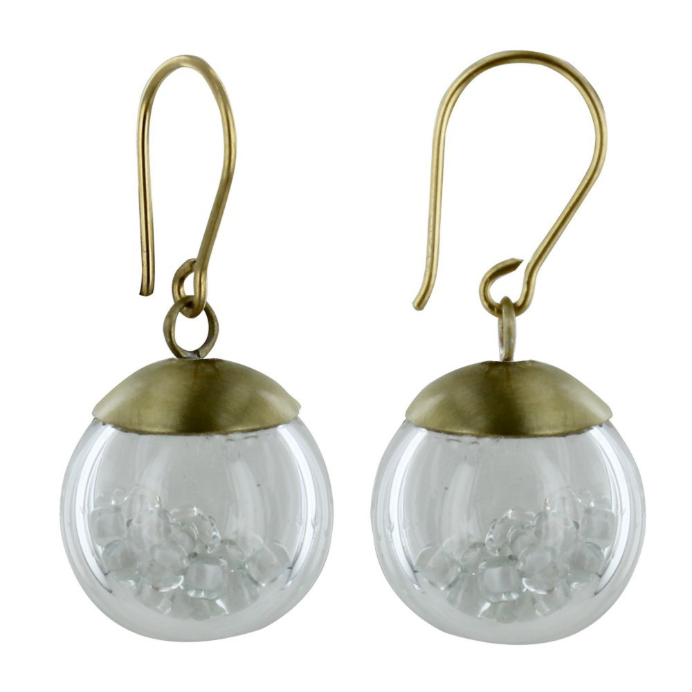 Boucles d'Oreilles Laiton Bulle Pâte de Verre et Perles - Classics