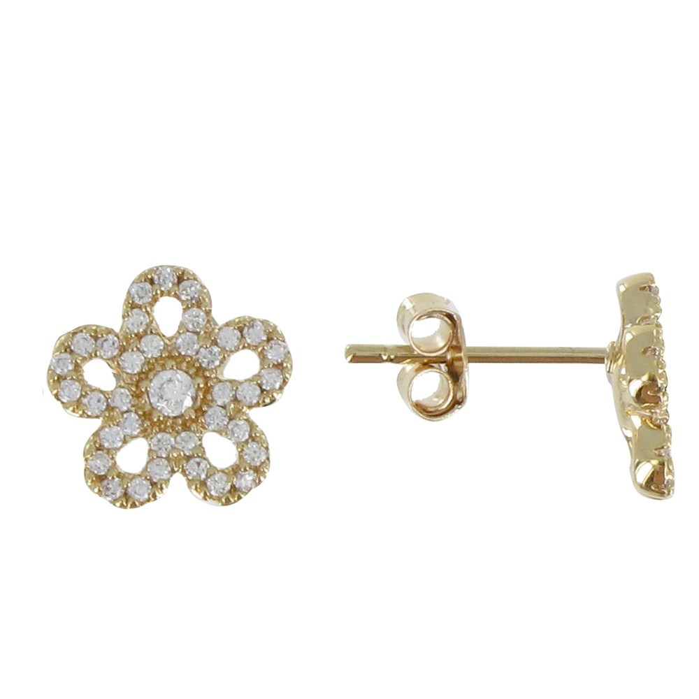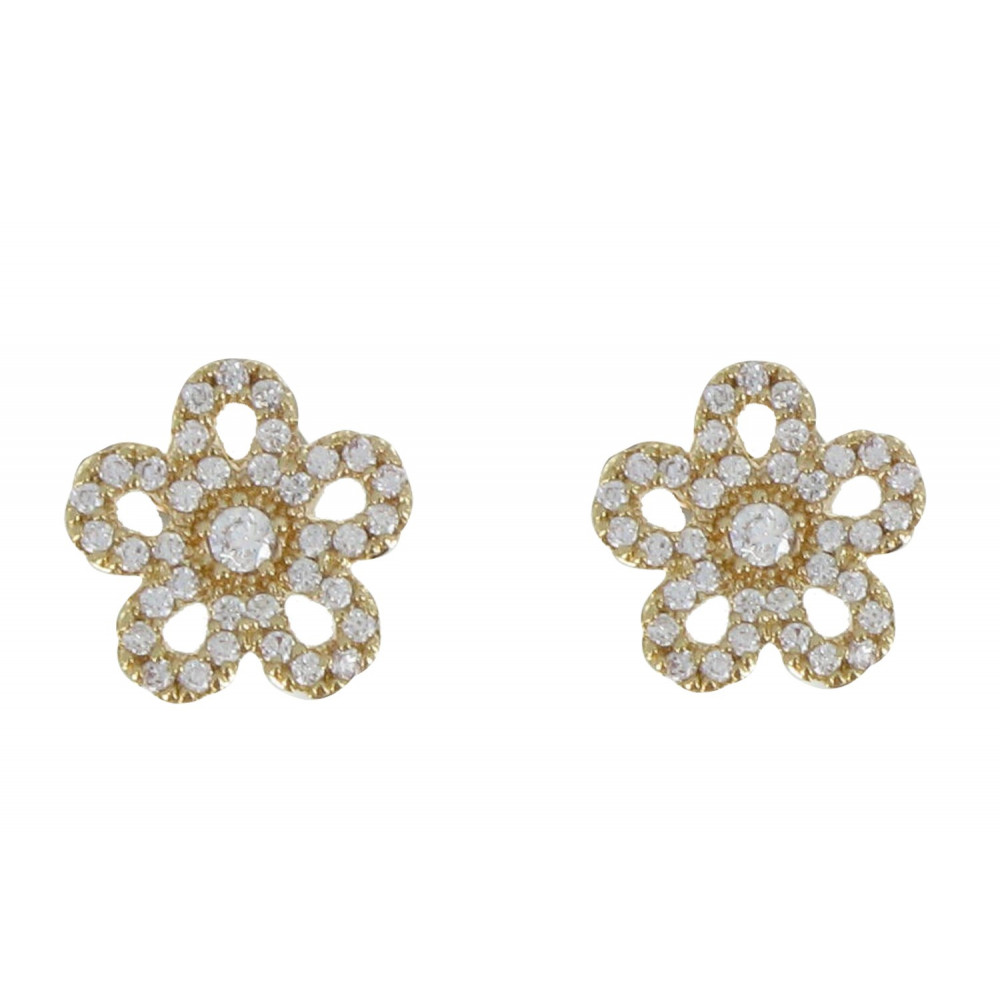 Boucles d'Oreilles Plaqué Or Marguerite et Strass