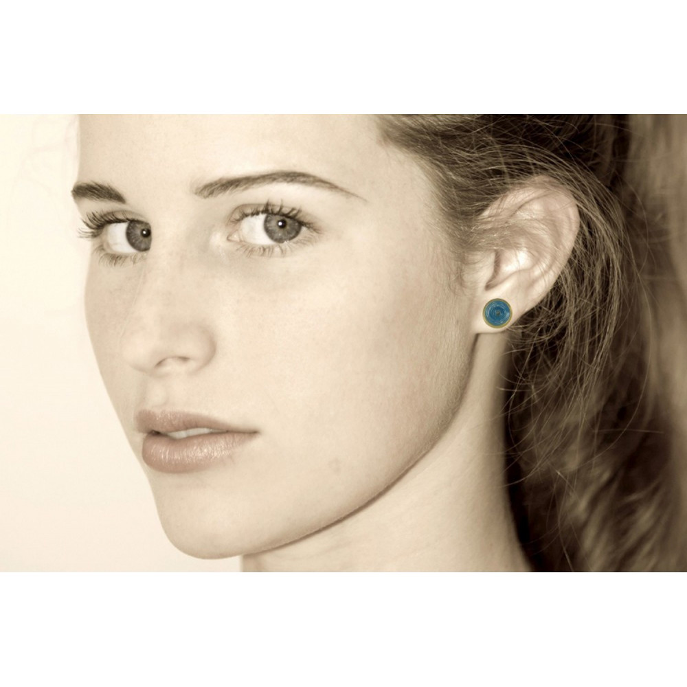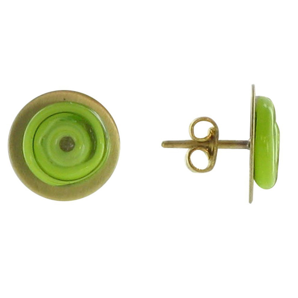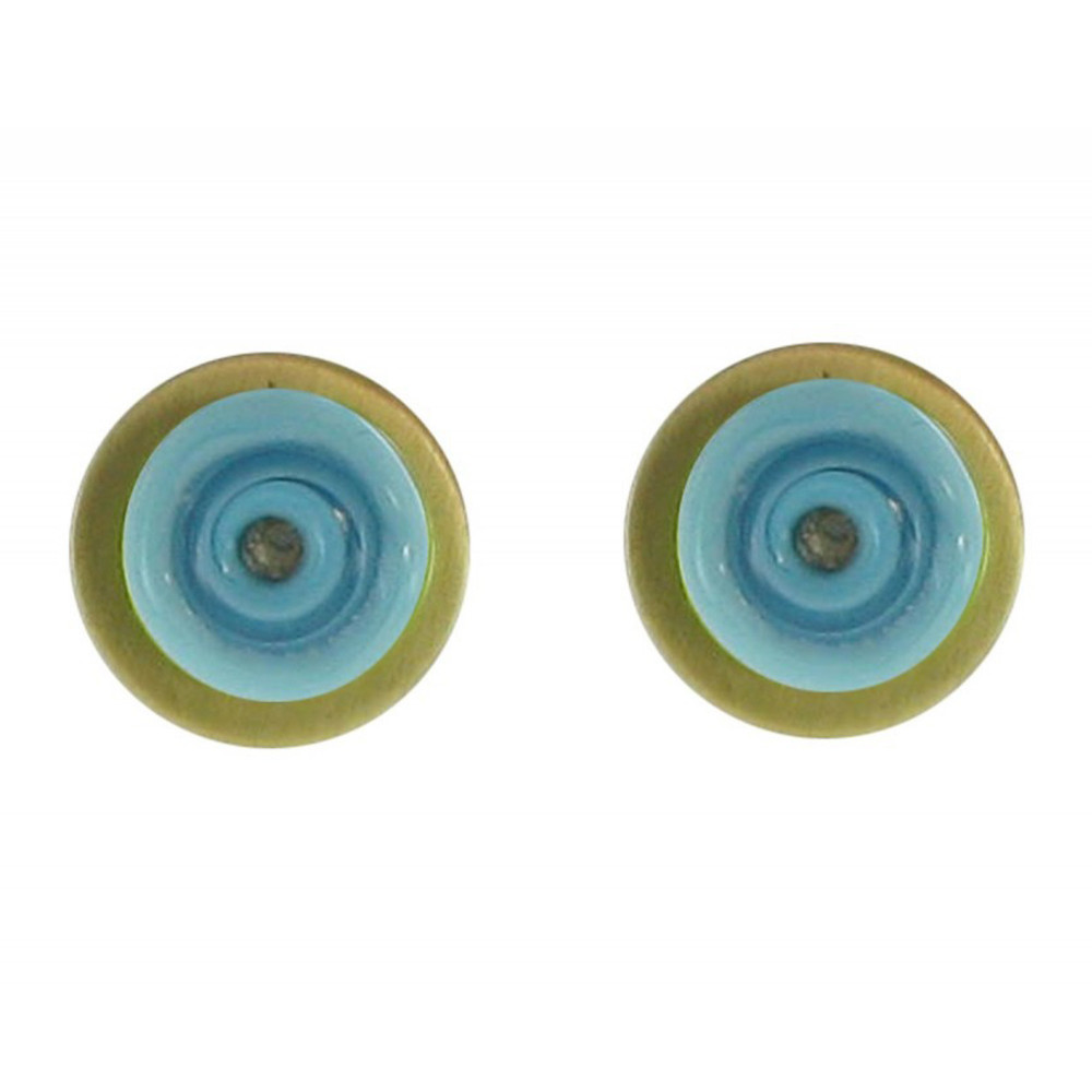 Boucles d'Oreilles Puces Disque en Laiton et Pâte de Verre - Classics