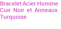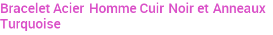 Bracelet Acier Homme Cuir Noir et Anneaux Turquoise