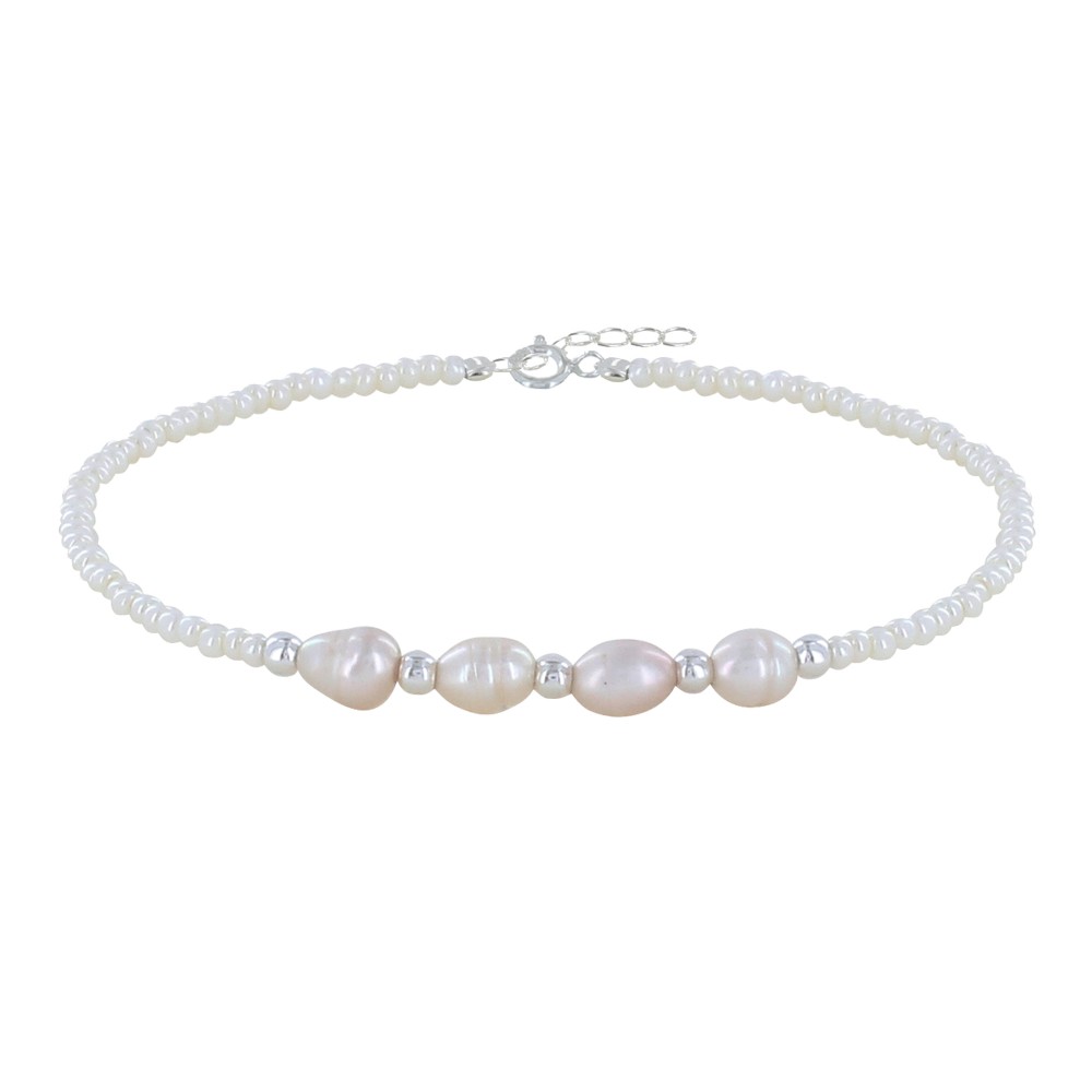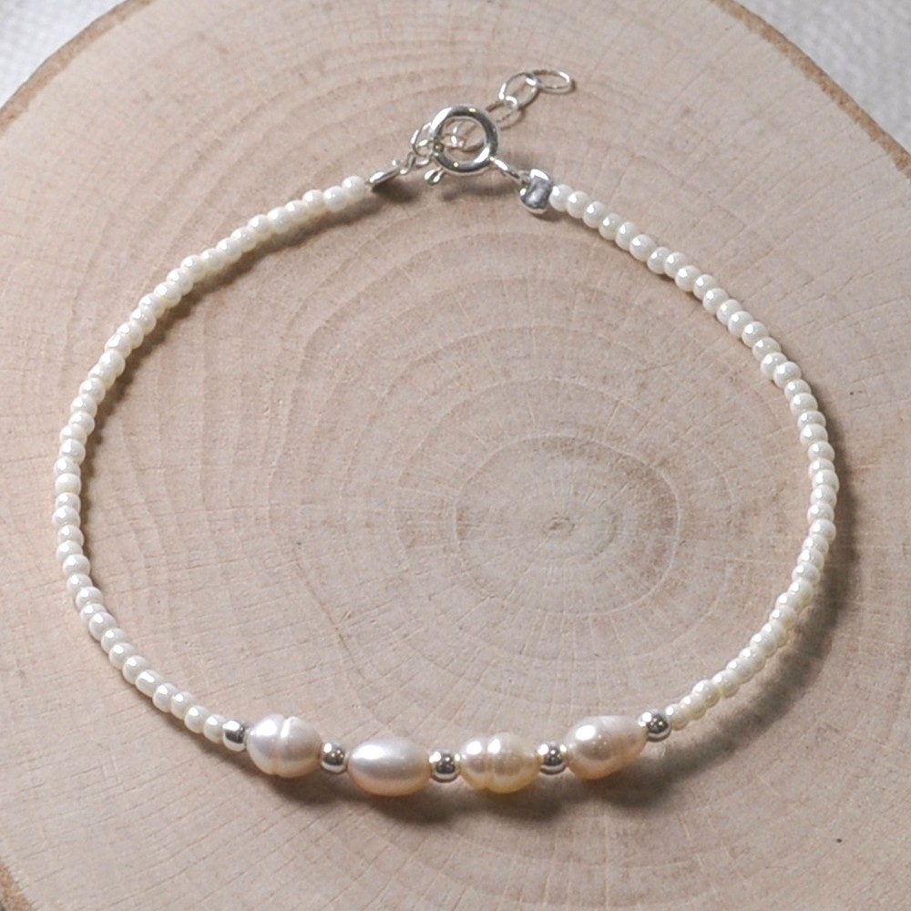 Bracelet Argent 925 4 Perles de Culture et Petites Perles Nacrées Blanches