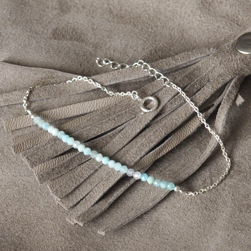 Bracelet Argent 925 Chaine et Perles Facettées d'Amazonite