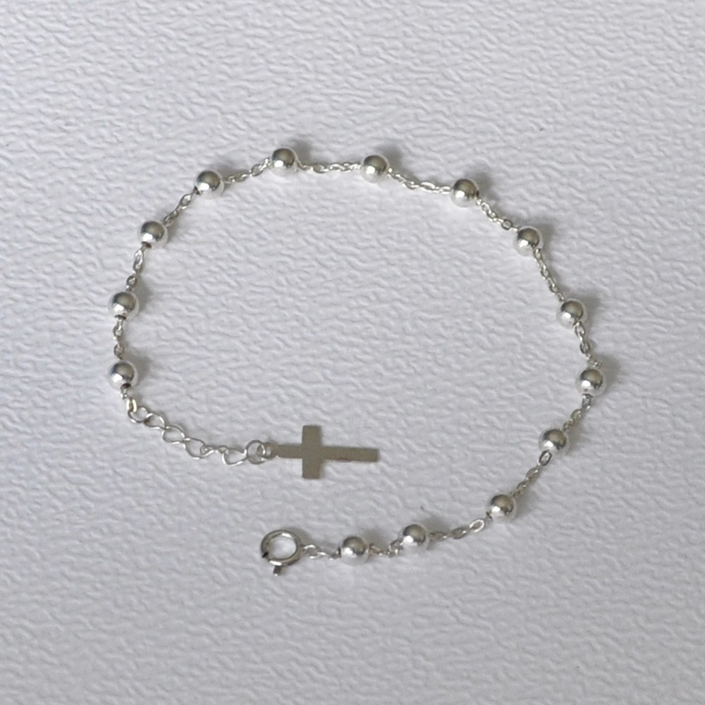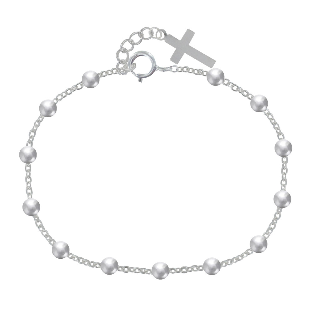 Bracelet Argent 925 Perles et Breloque Croix