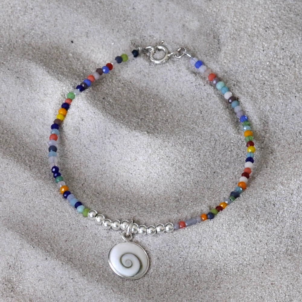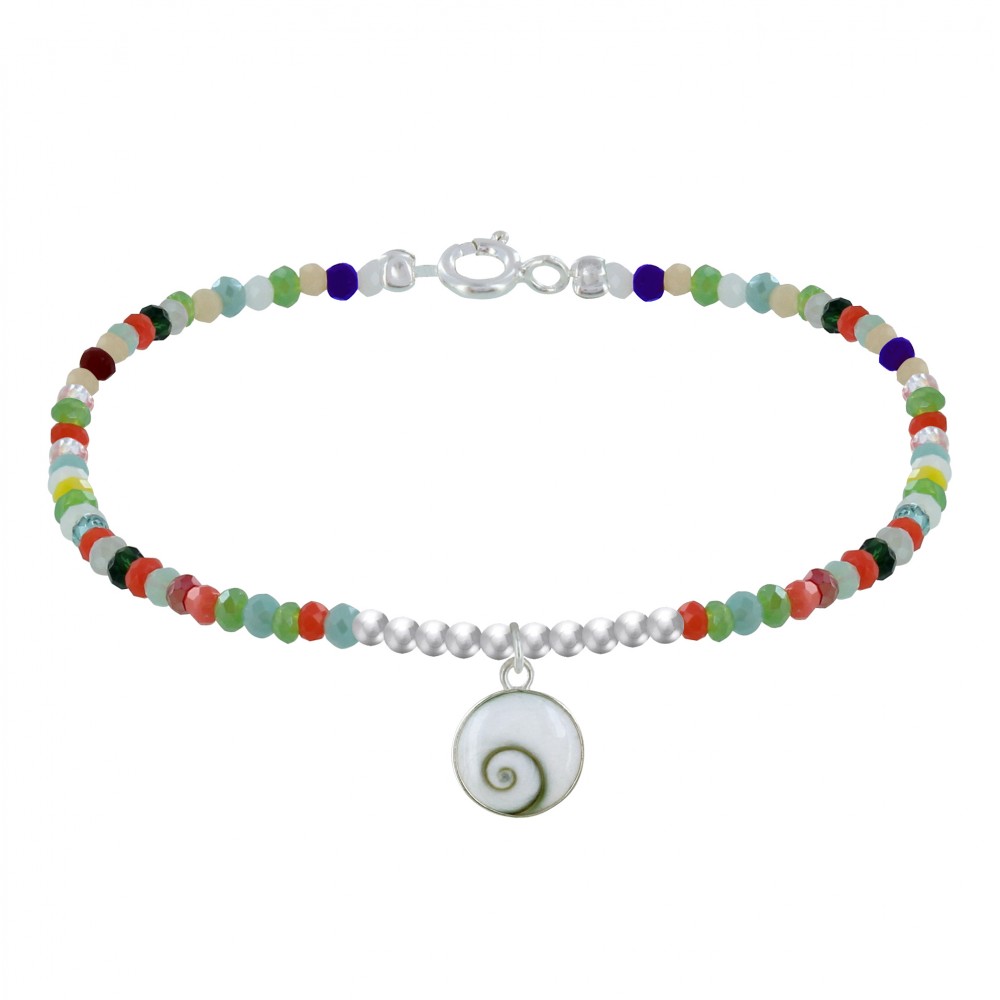 Bracelet Argent 925 Perles Facettées Multicolores Oeil de Sainte Lucie Rond