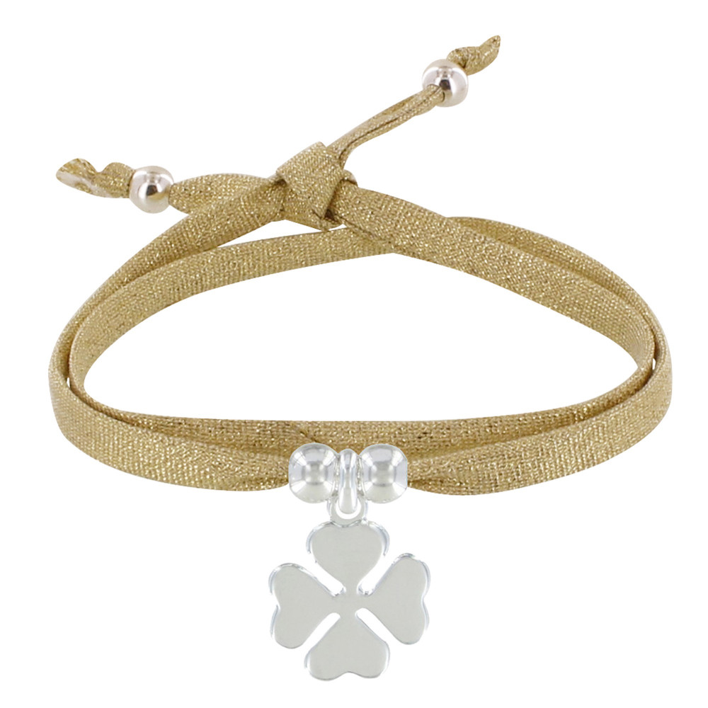 Bracelet Double Tour Lien Lurex et Trèfle Argent 925