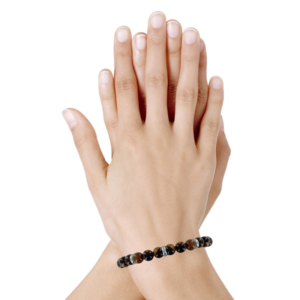 Bracelet Elastique Anneau Acier et Perles Oeil de Tigre