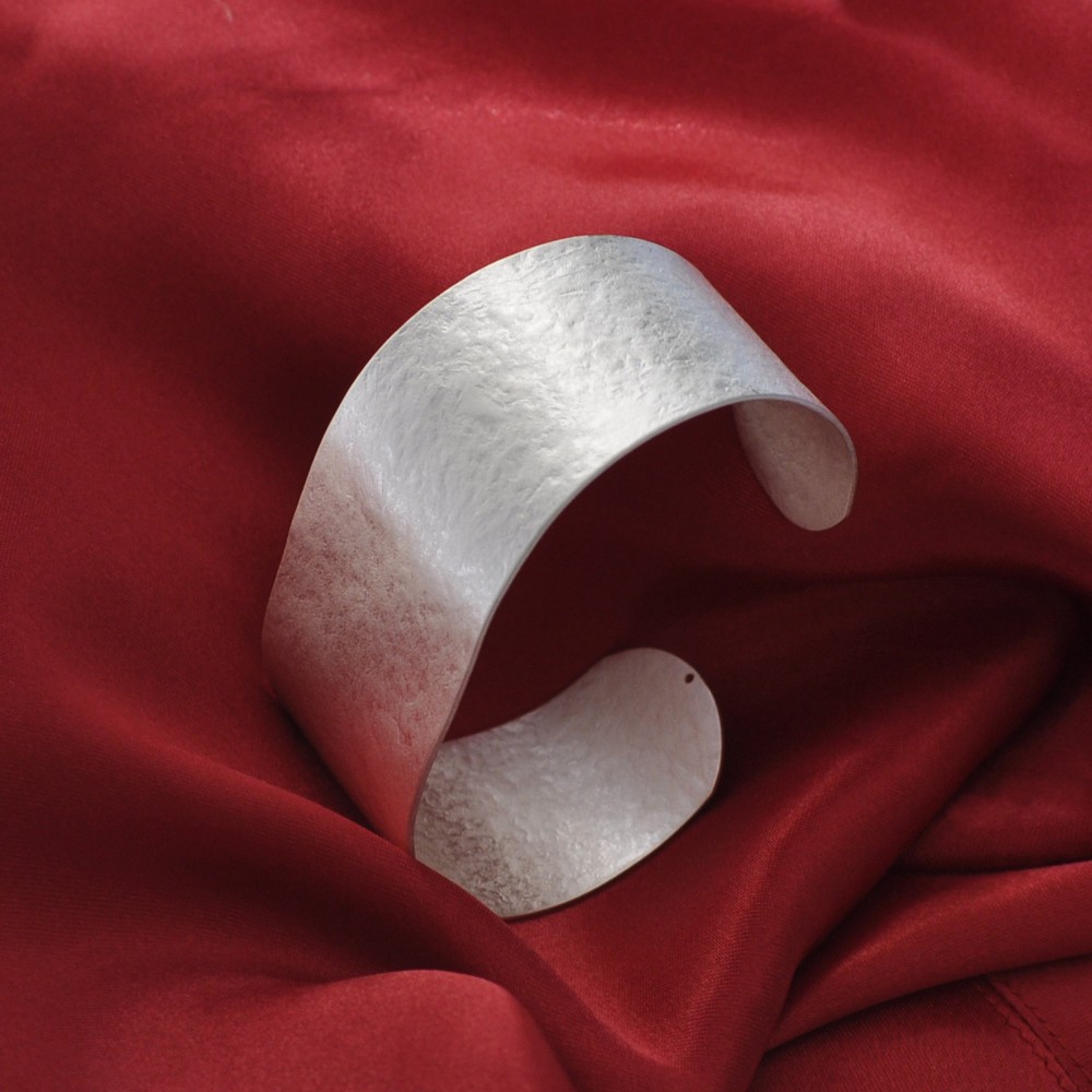 Bracelet Laiton Argenté Manchette Plate Martelée