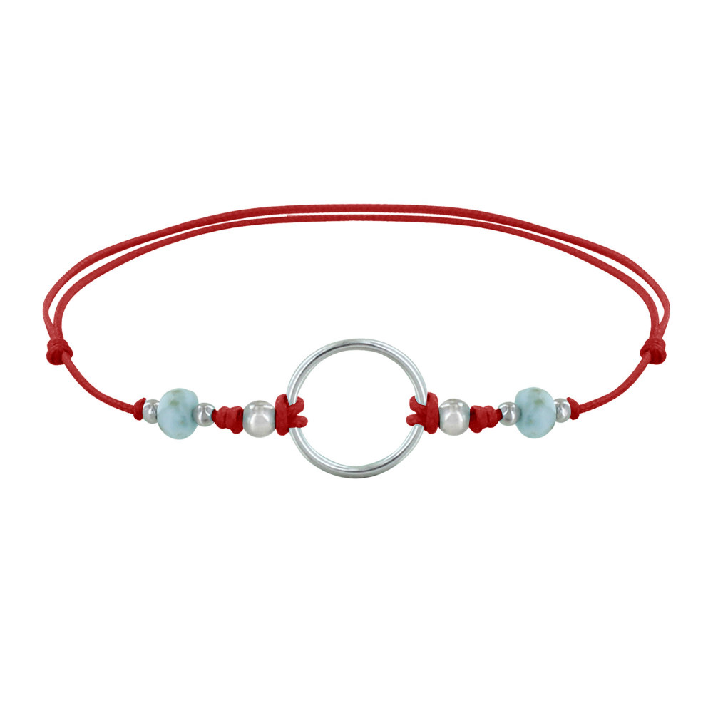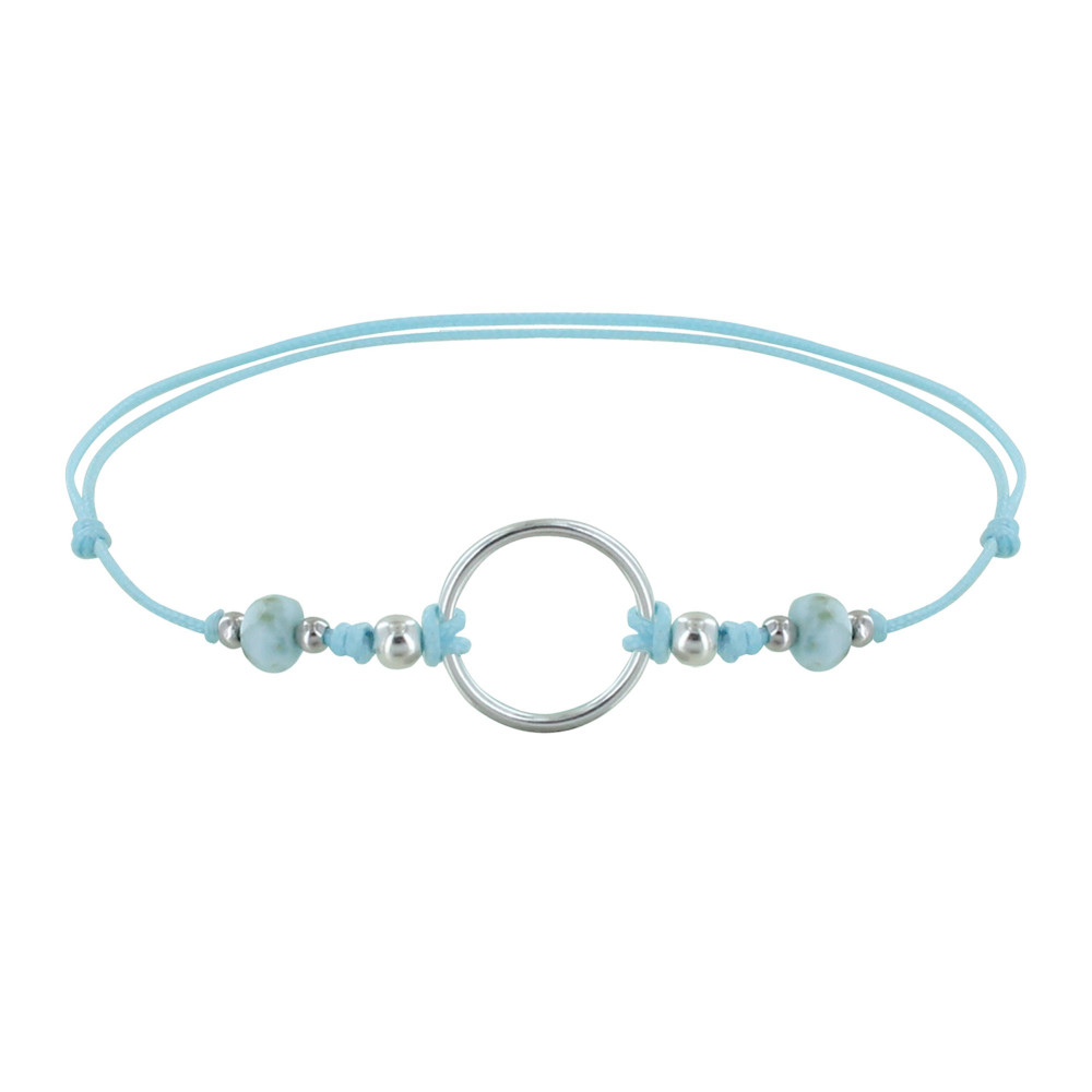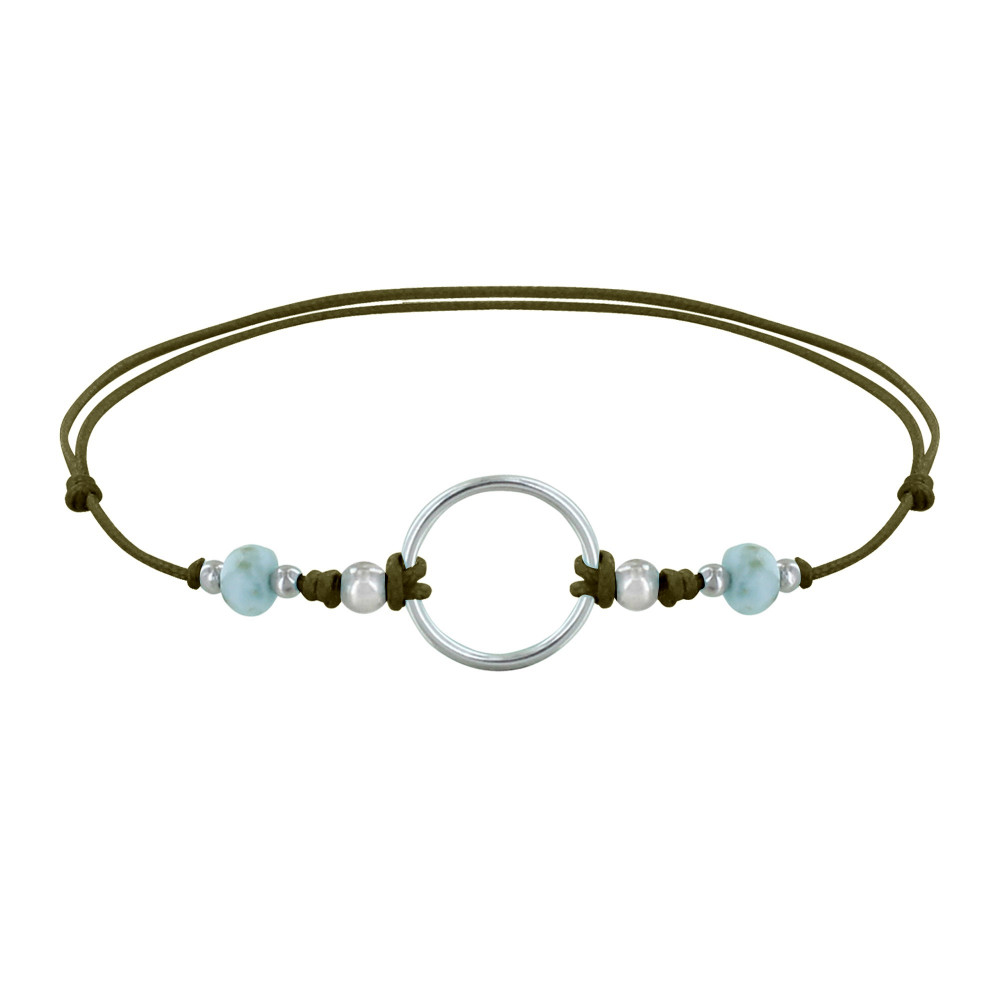 Bracelet Lien Cercle Argent 925 et Deux Perles Facettées de Larimar